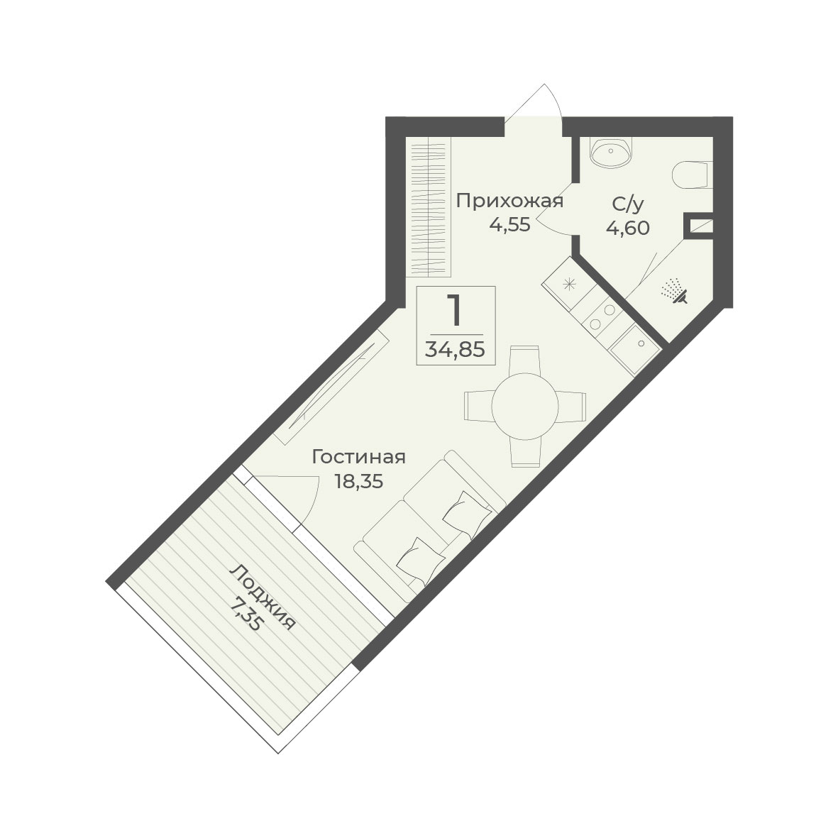 1‑комнатные апартаменты