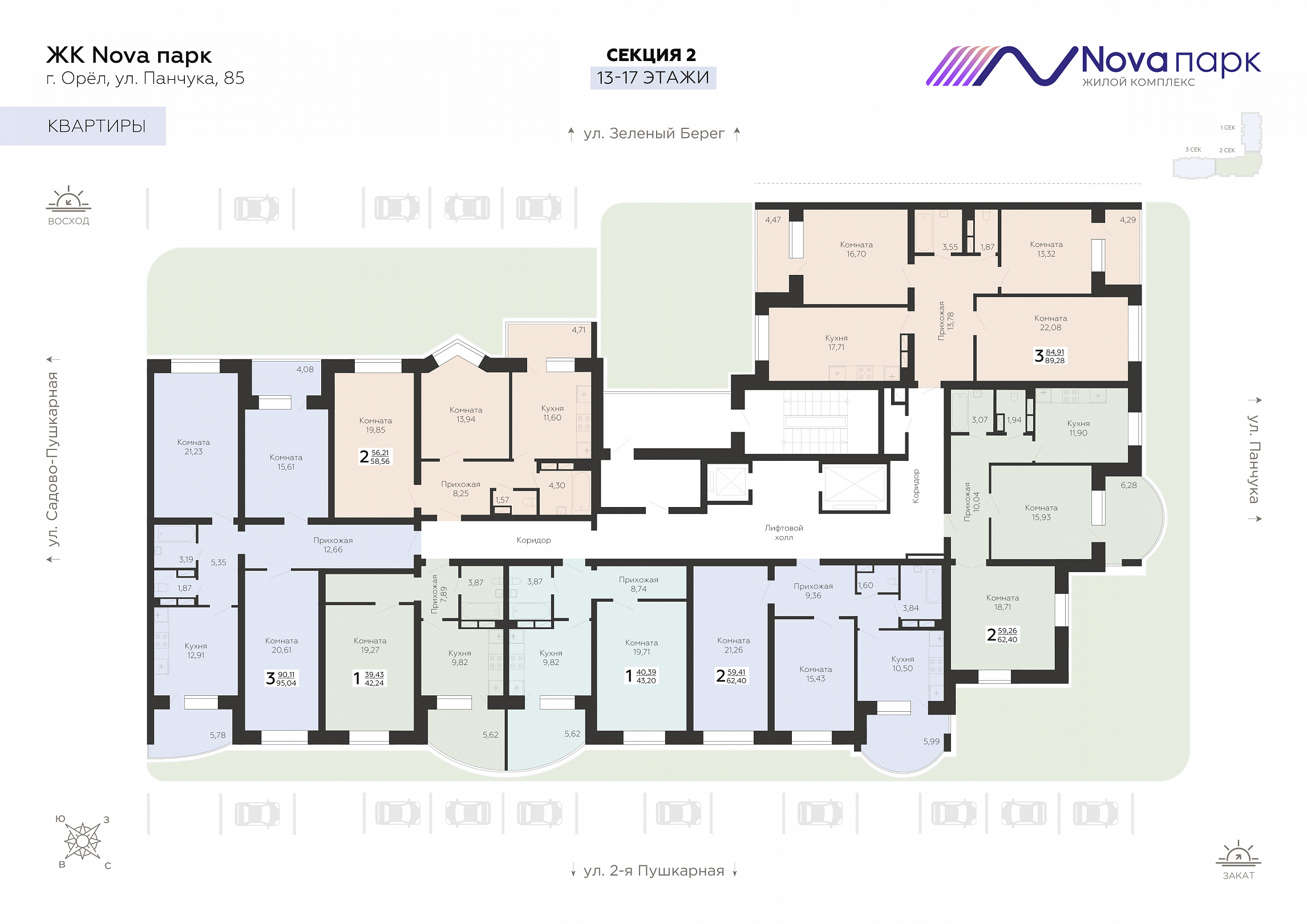1-комнатная квартира, 45.31 м2, 1 этаж, №131, Nova парк