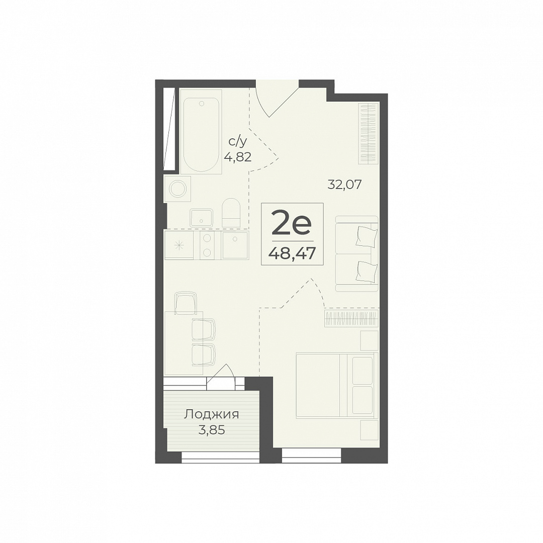 2-ком. квартира (Евро), 48.47 м2, 2 этаж, №240, Botanica