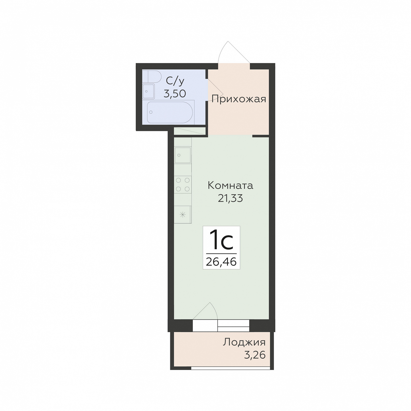 1-комнатная (студия), 26.46 м2, 5 этаж, №1 121, Домино
