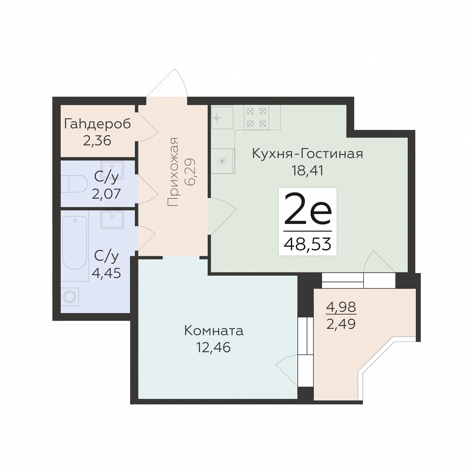 2-ком. квартира (Евро), 48.53 м2, 11 этаж, №1 004, Домино