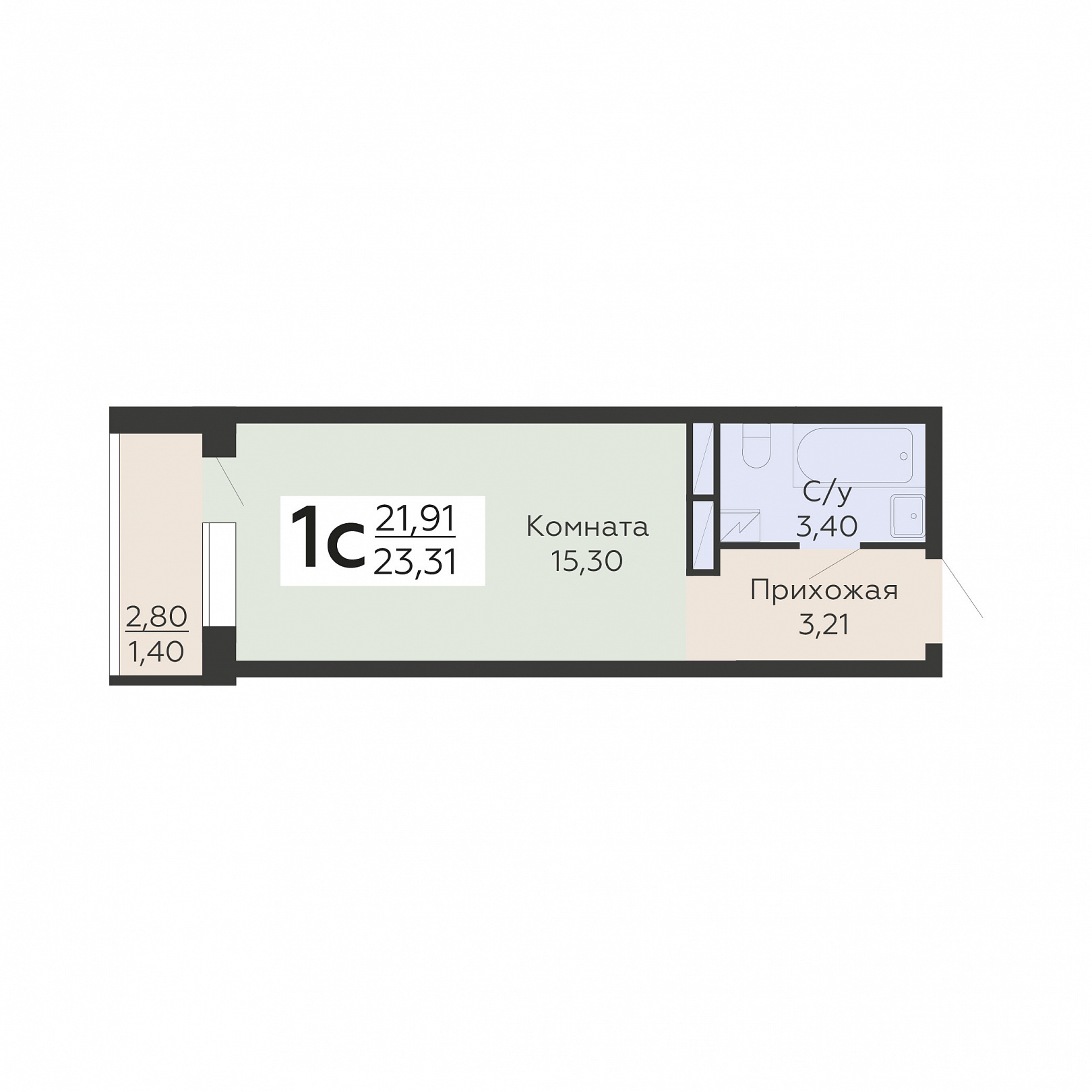1-комнатная (студия), 23.31 м2, 2 этаж, №847, Никитинские сады