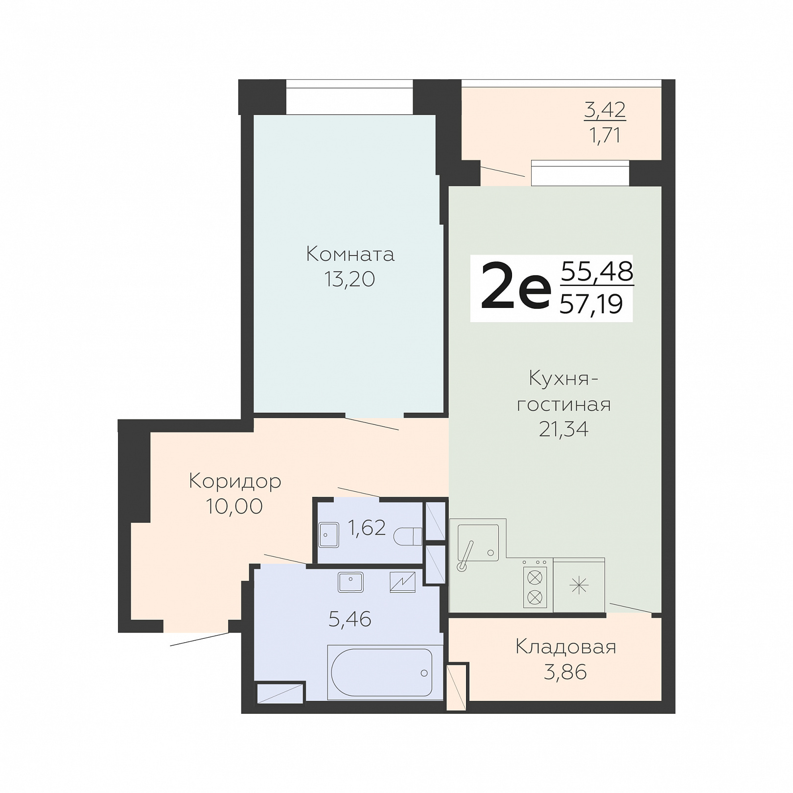 2-ком. квартира (Евро), 57.19 м2, 13 этаж, №608, Зарядье