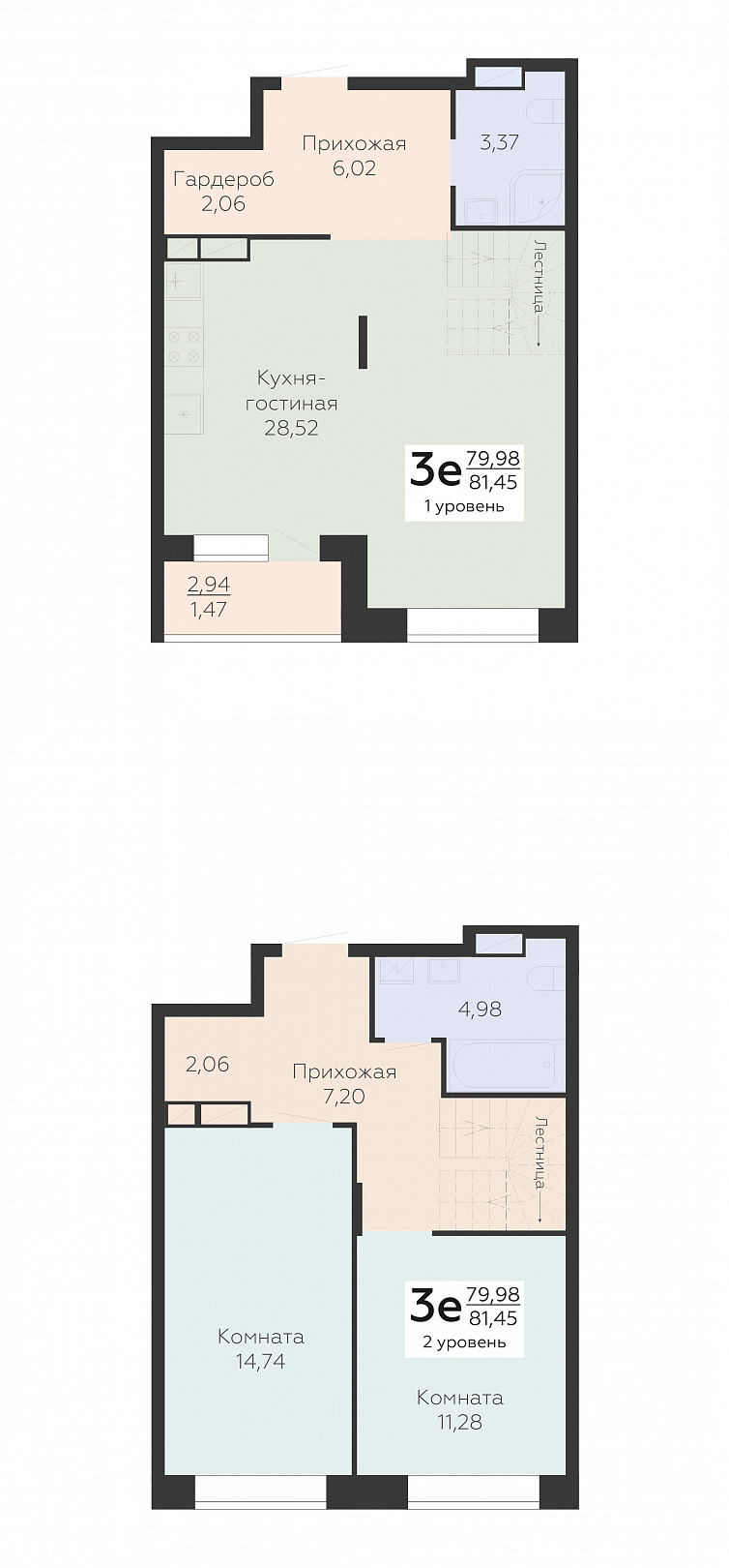 3х ком-ая 2х ур-ая ЕВРО, 81.45 м2, 23 этаж, №683, Зарядье