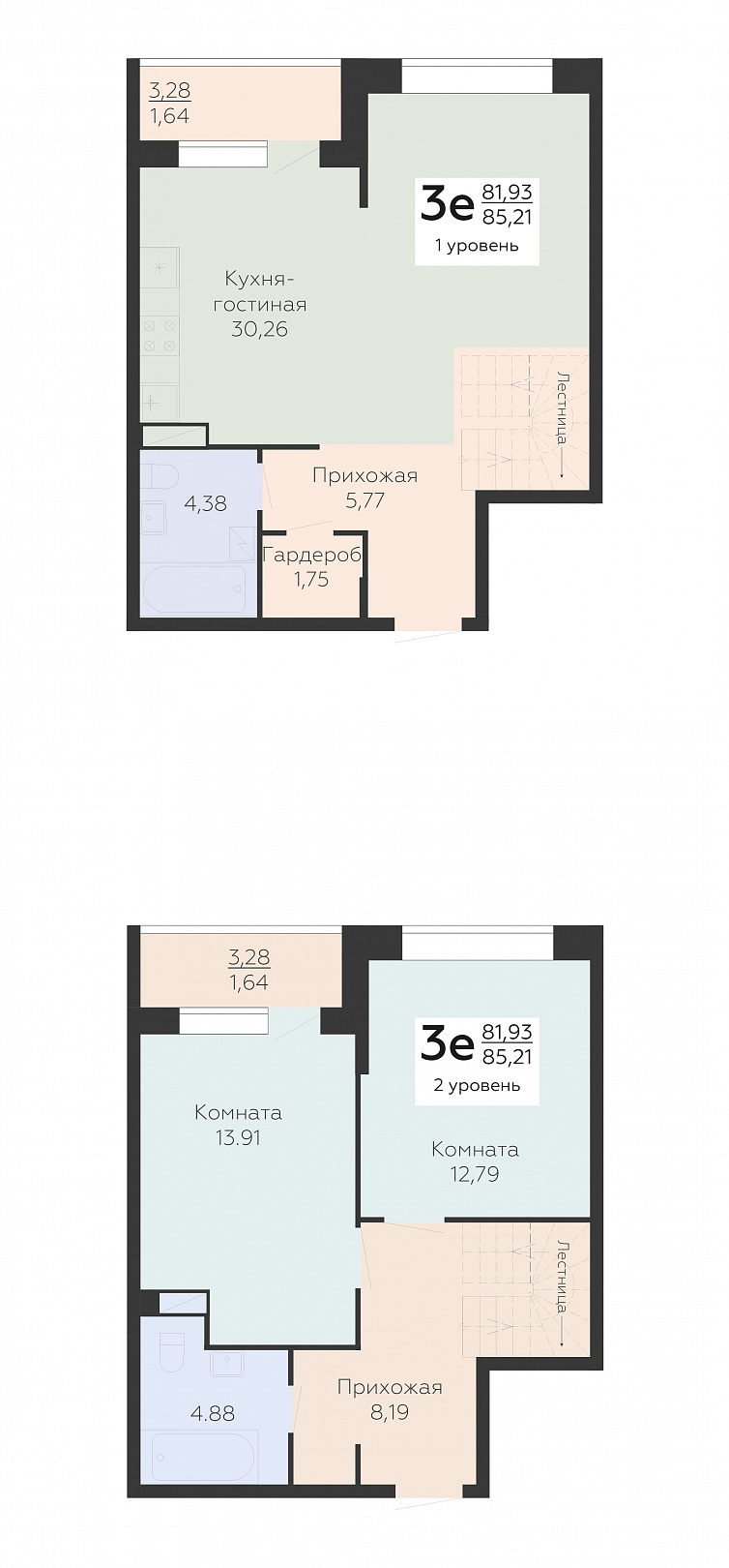 3х ком-ая 2х ур-ая ЕВРО, 85.21 м2, 23 этаж, №686, Зарядье
