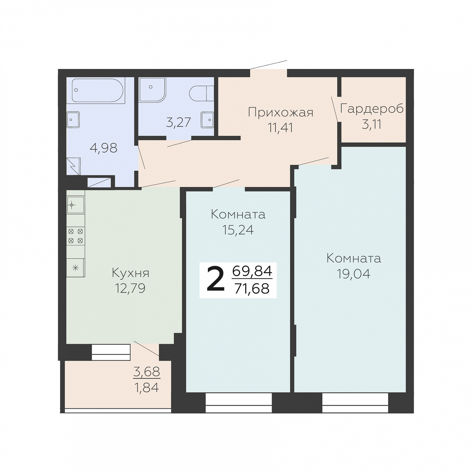 2-комнатная квартира, 71.68 м2, 6 этаж, №917, Зарядье