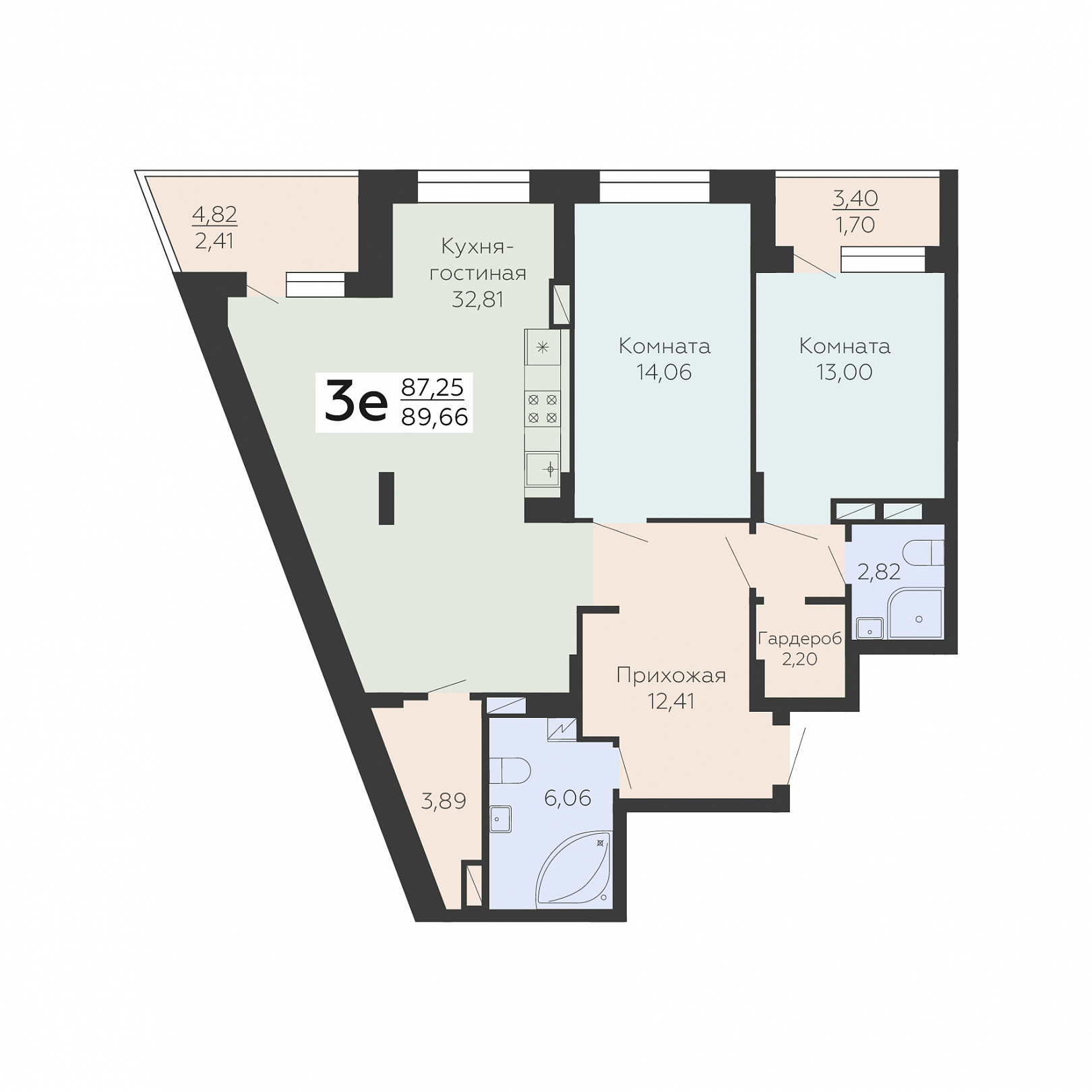 3-ком. квартира (Евро), 89.66 м2, 18 этаж, №1 016, Зарядье