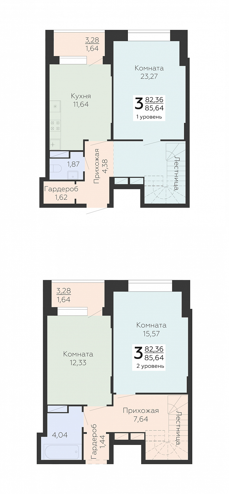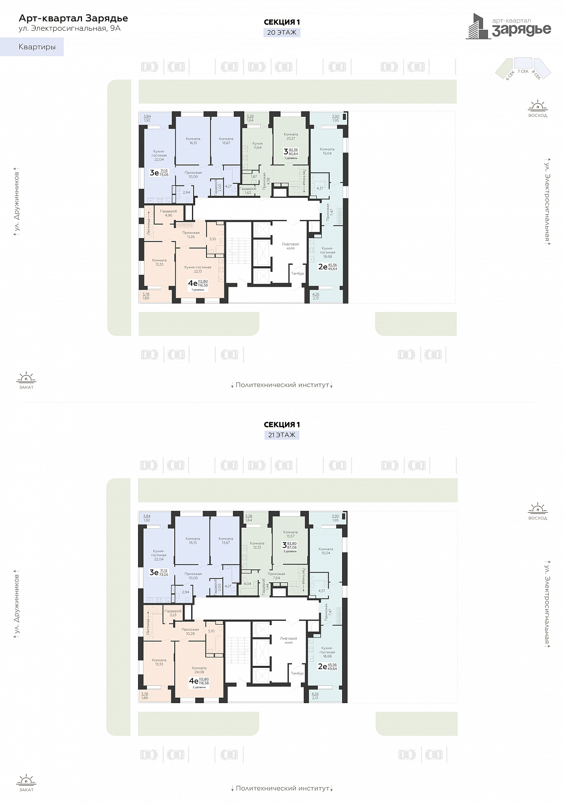 3х комнатная 2х уровневая, 85.64 м2, 20 этаж, №854, Зарядье