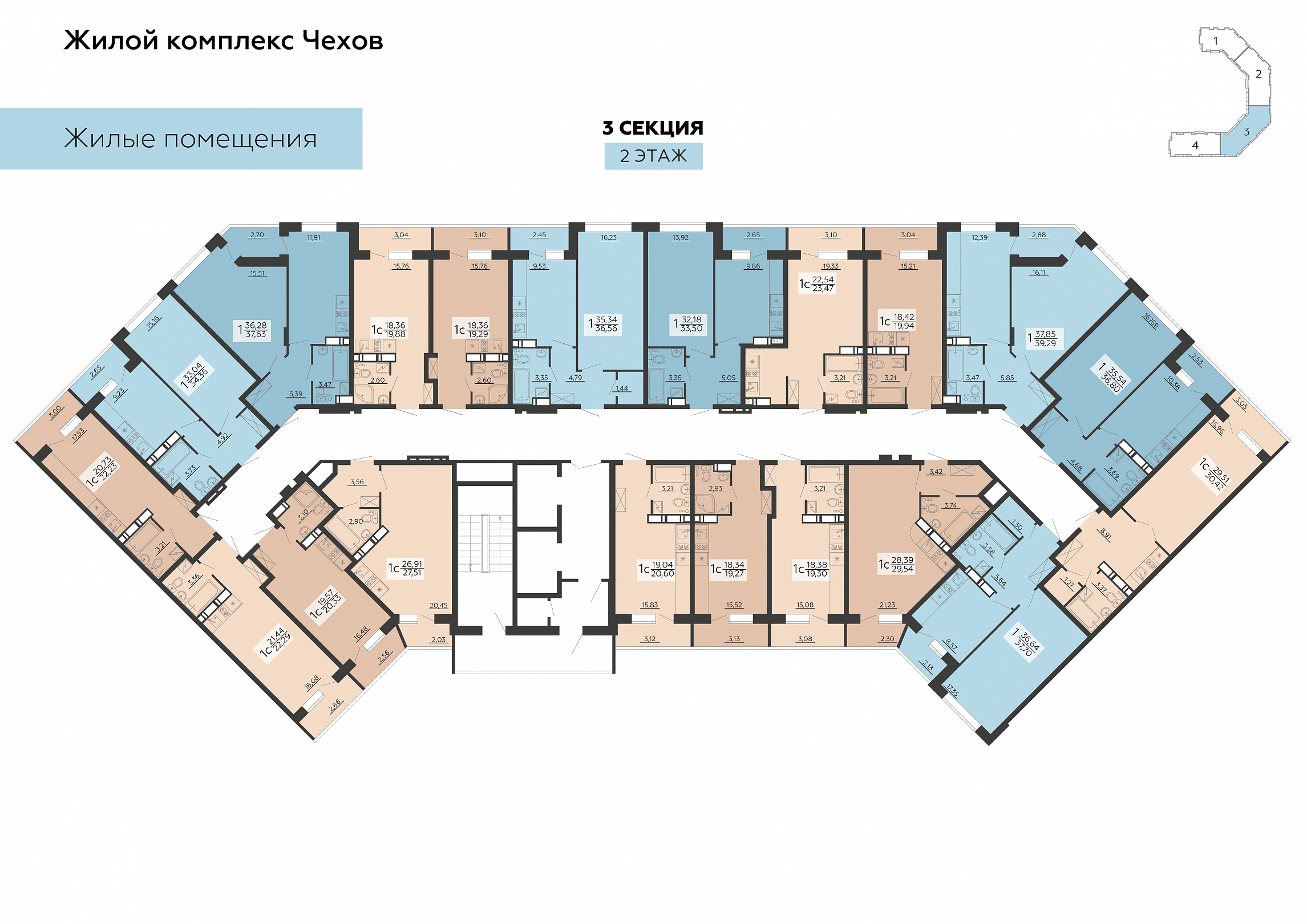 1-комнатная (студия), 29.54 м2, 2 этаж, №587, Чехов