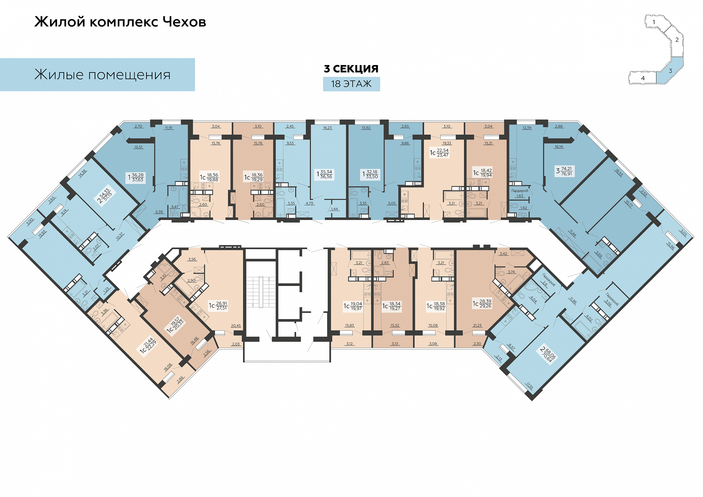 3-комнатная квартира, 76.91 м2, 18 этаж, №903, Чехов