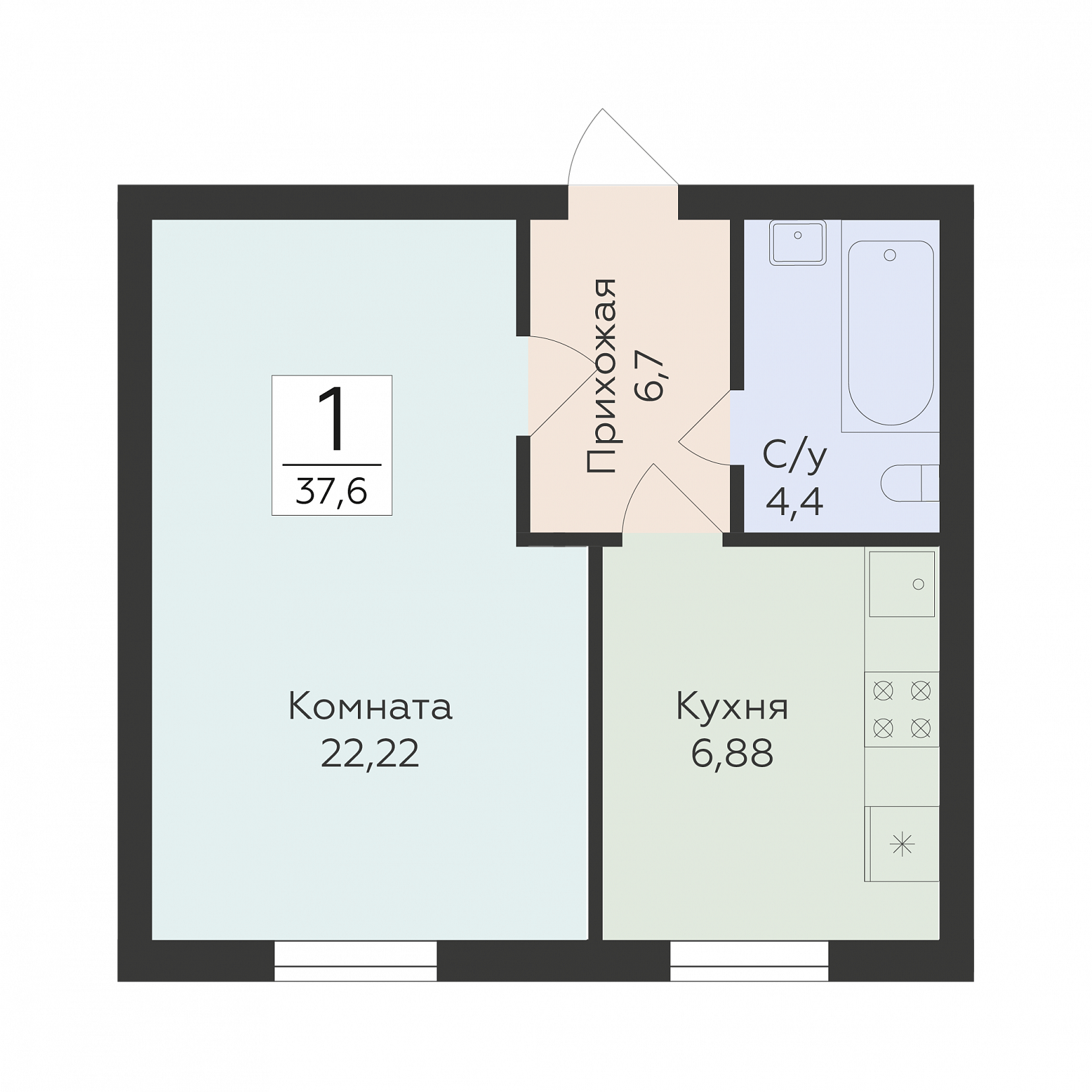 1-комнатная квартира, 37.6 м2, 1 этаж, №151, Классики