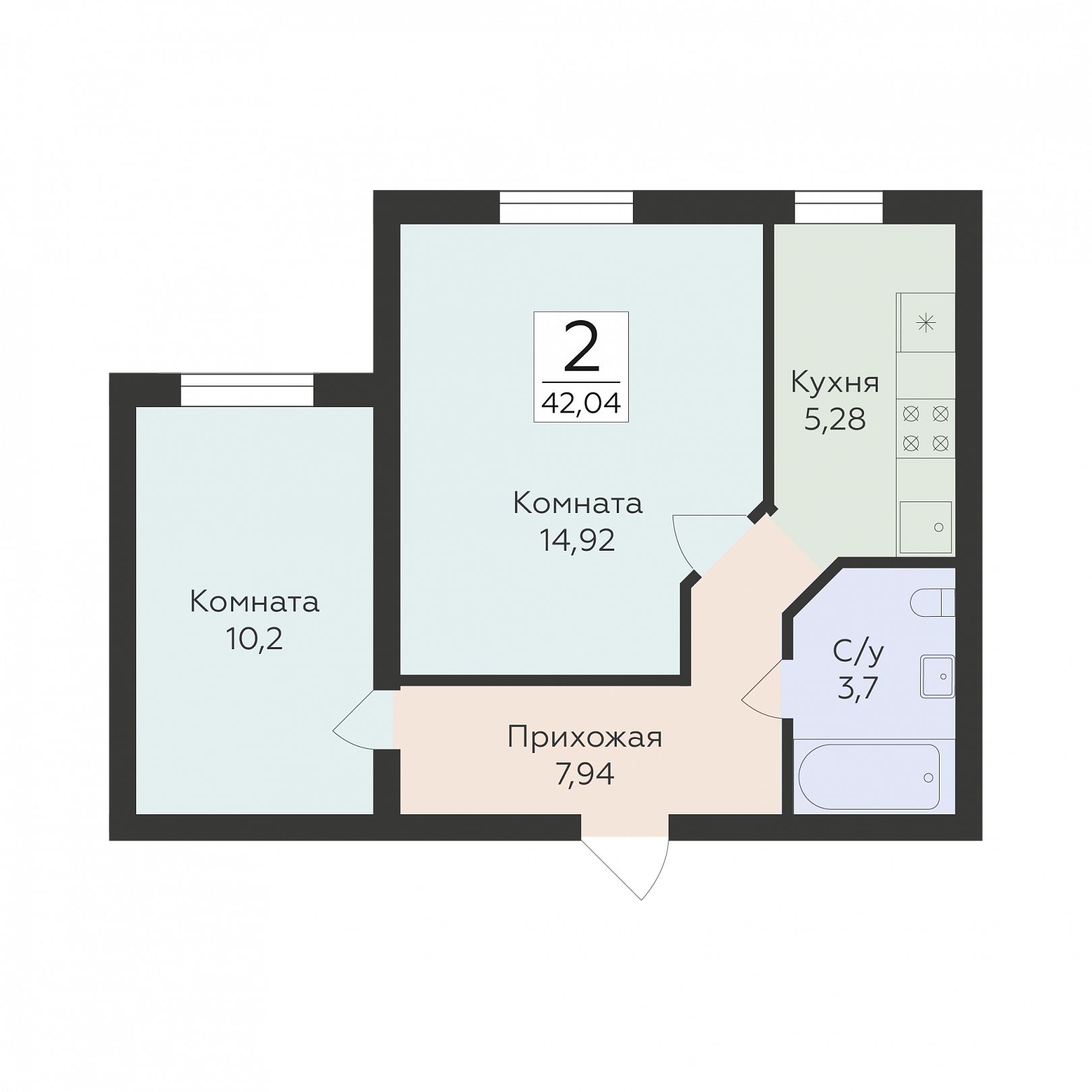 2-комнатная квартира, 42.04 м2, 1 этаж, №147, Классики