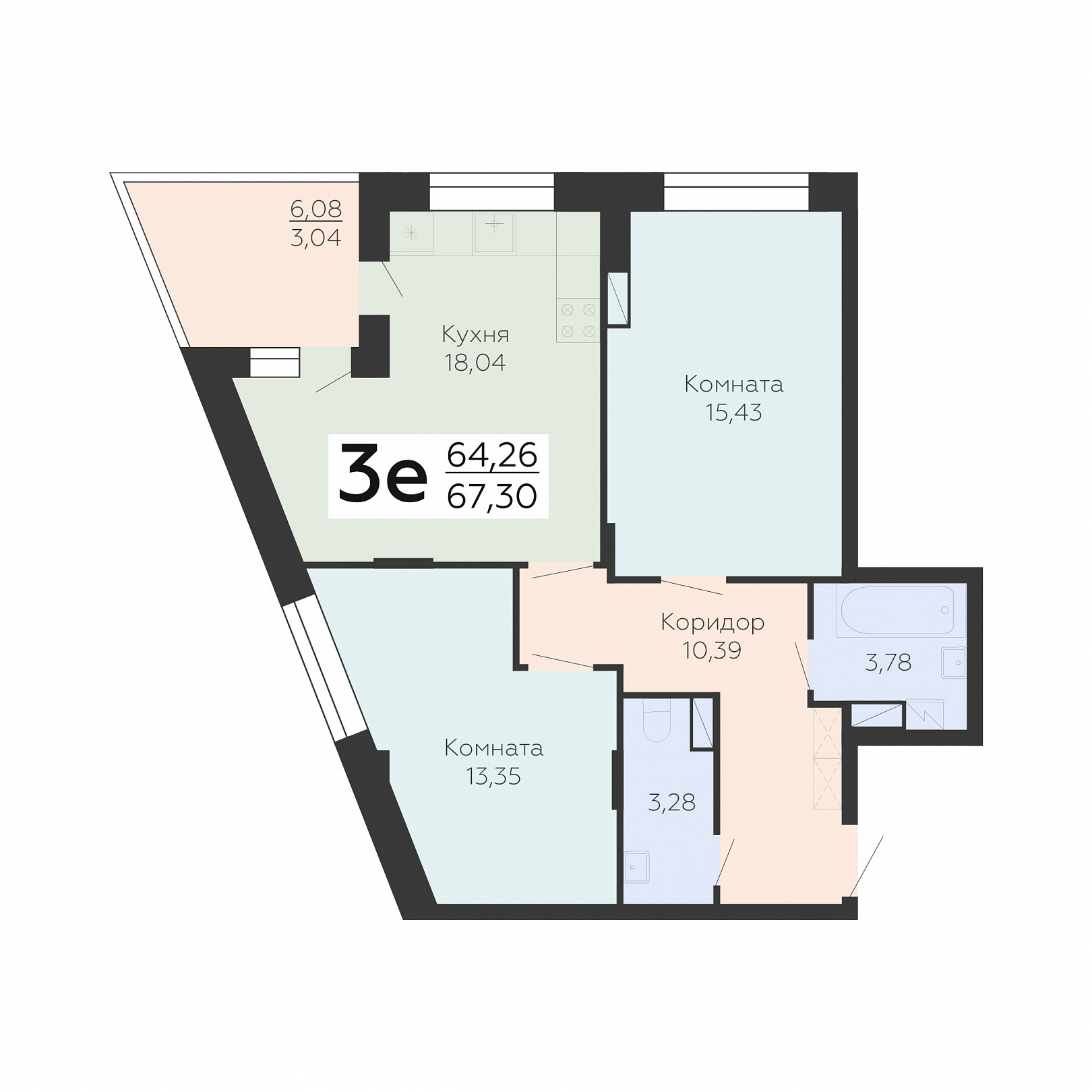 2-комнатная квартира, 67.3 м2, 15 этаж, №343, Зарядье