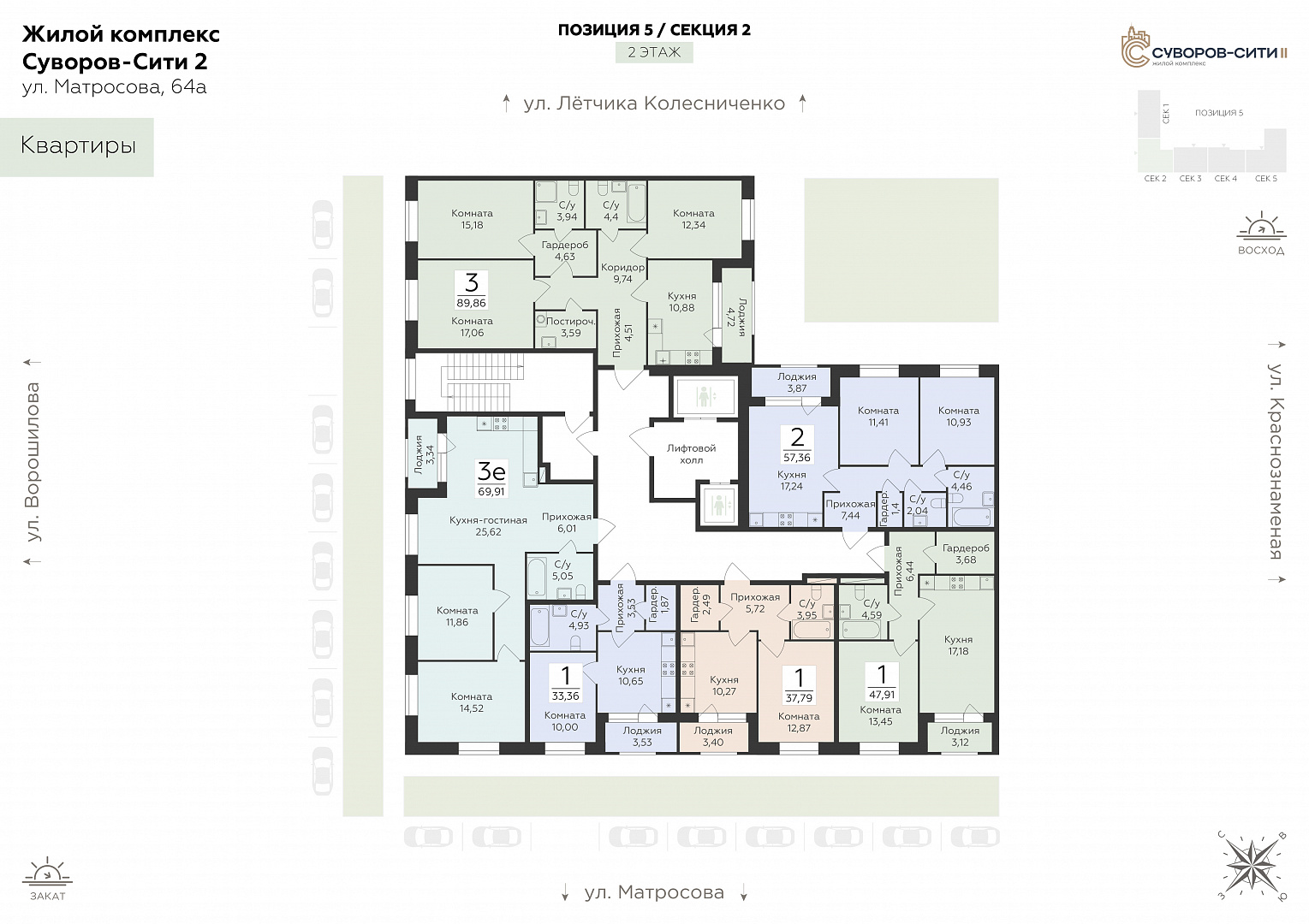 1-комнатная квартира, 37.79 м2, 2 этаж, №81, Суворов сити 2
