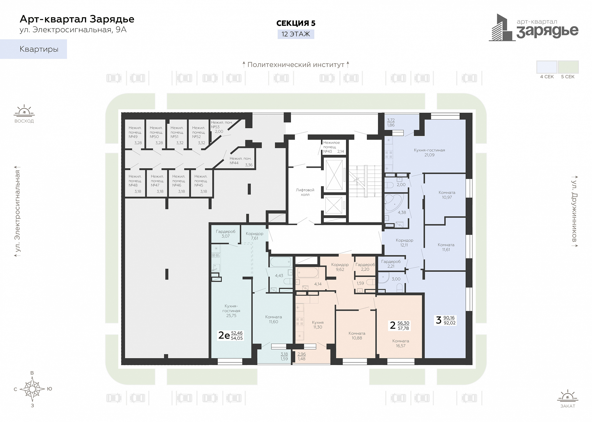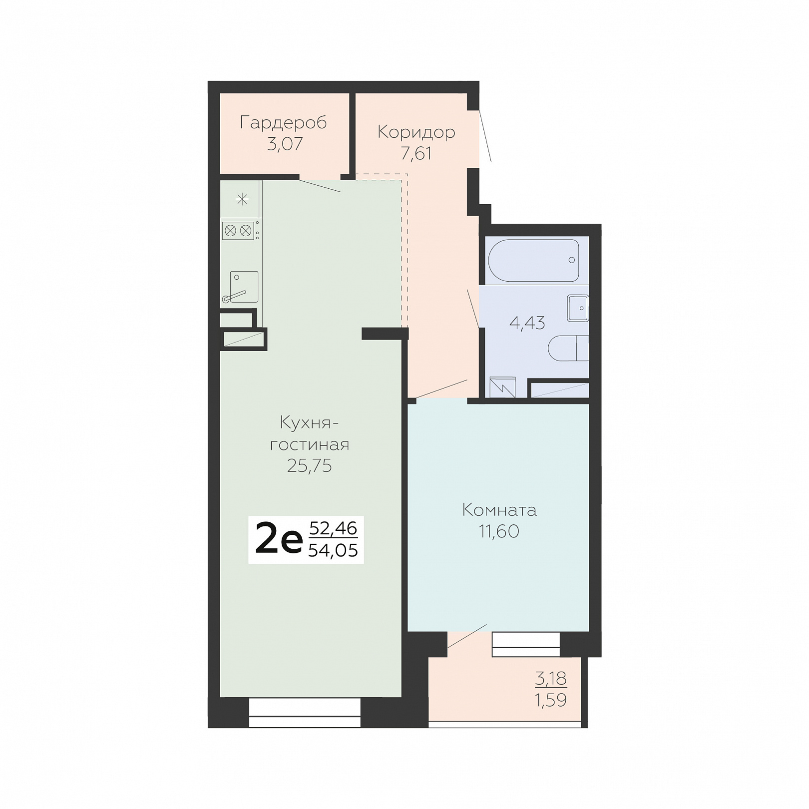 2-ком. квартира (Евро), 54.05 м2, 12 этаж, №754, Зарядье