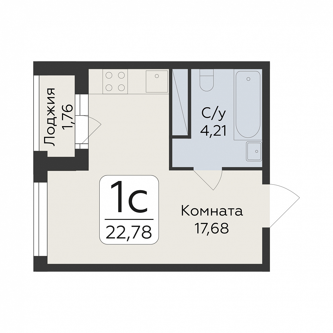1-комнатная (студия), 22.78 м2, 7 этаж, №55, Люмен