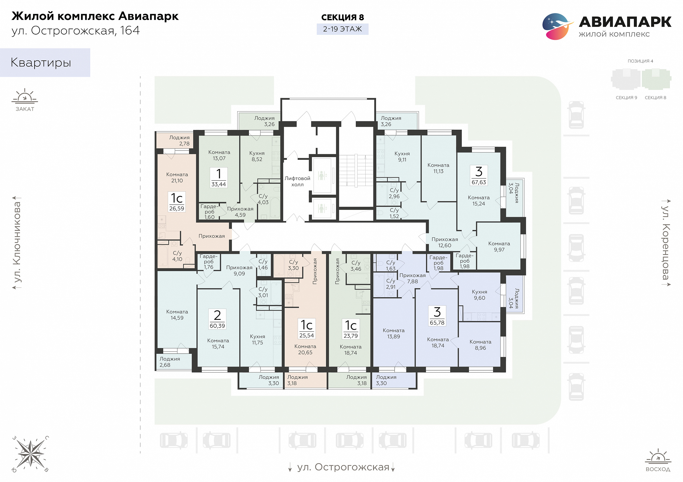 3-комнатная квартира, 67.63 м2, 9 этаж, №57, Авиапарк