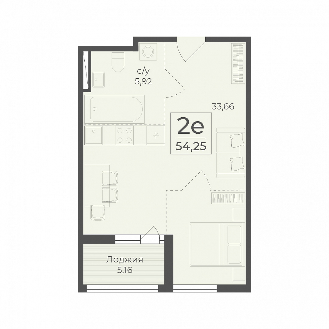 2-ком. квартира (Евро), 54.25 м2, 9 этаж, №135, Botanica