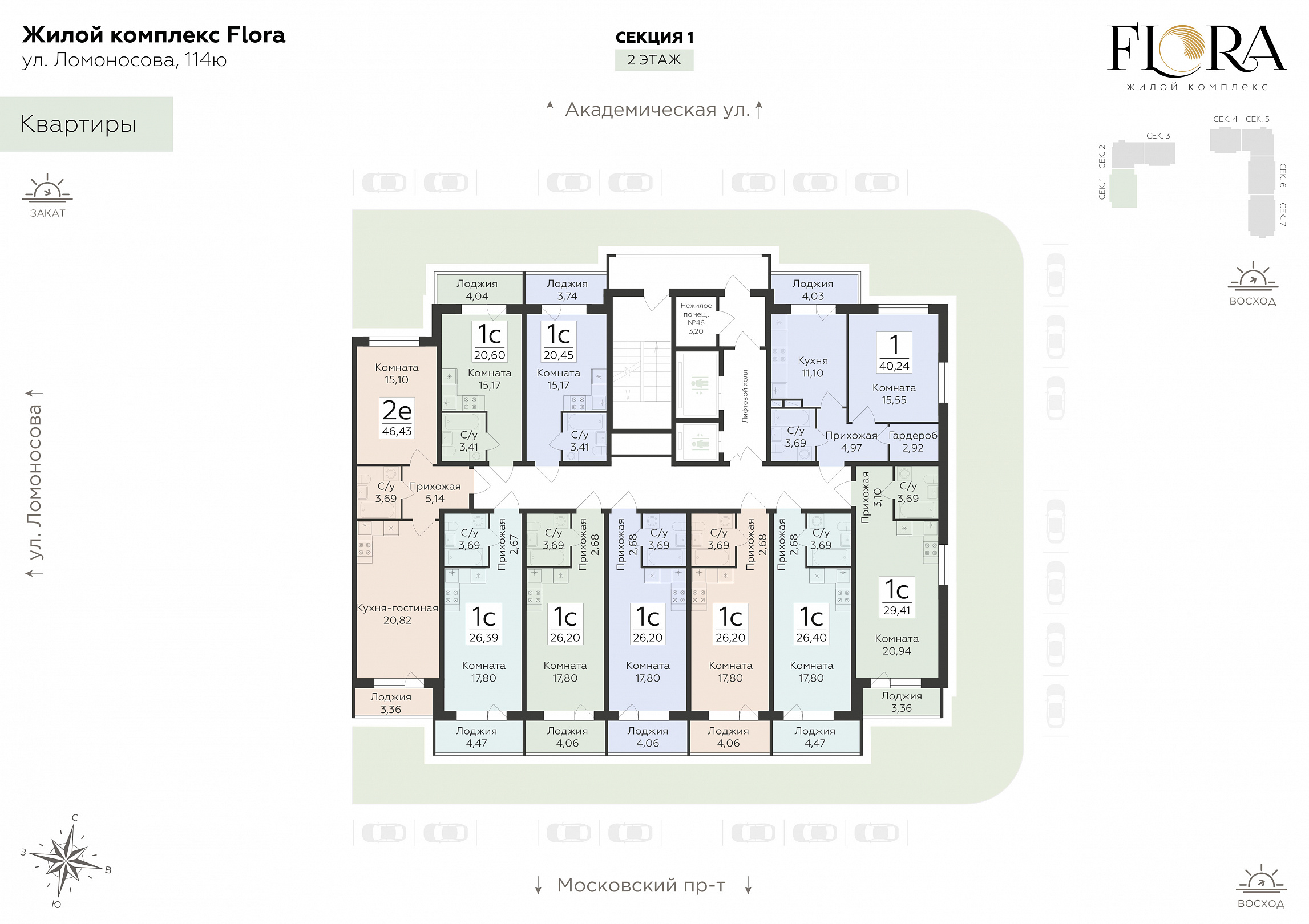 1-комнатная (студия), 26.2 м2, 2 этаж, №5, Flora