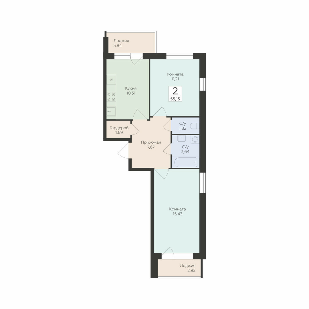 2-комнатная квартира, 55.15 м2, 2 этаж, №247, Flora