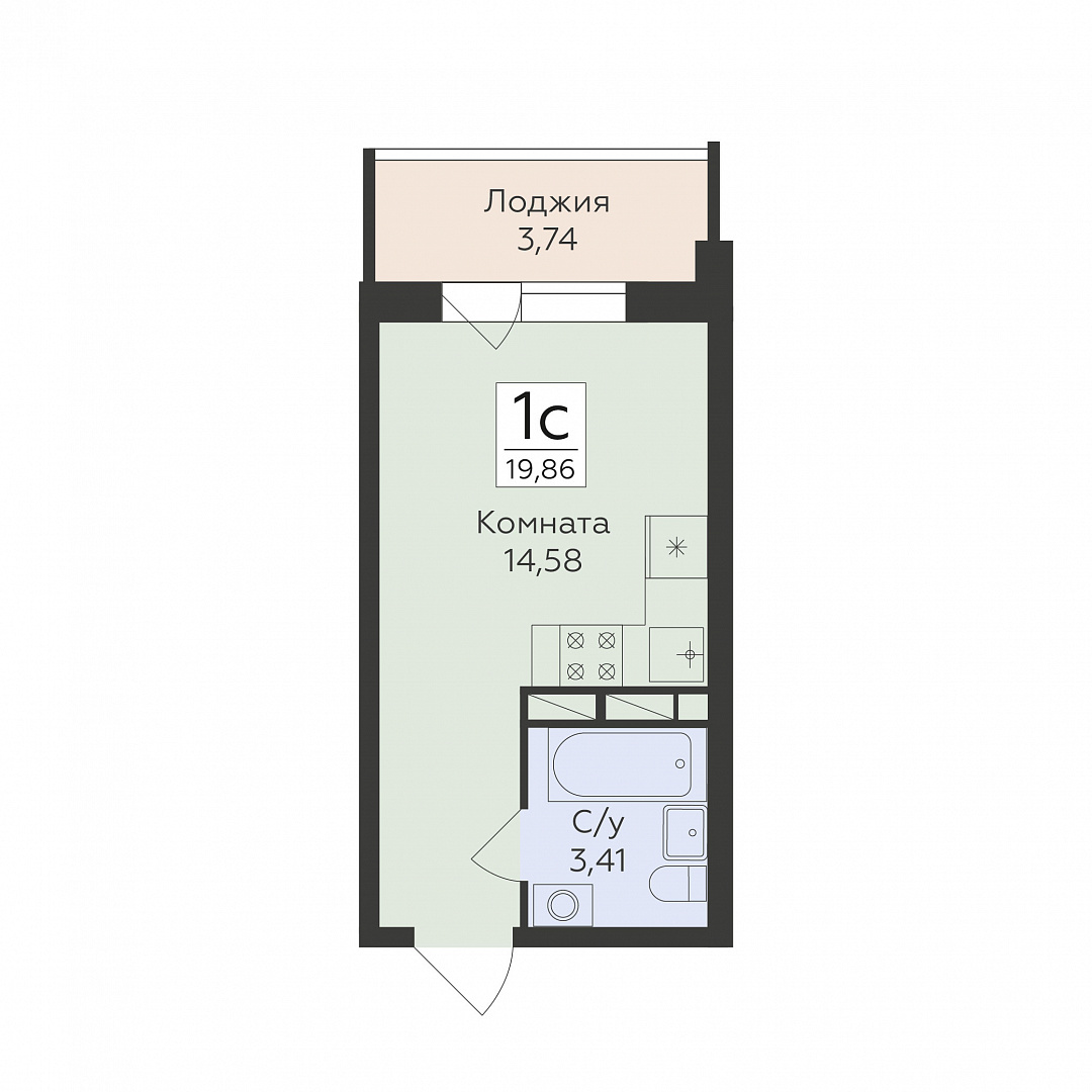 1-комнатная (студия), 19.86 м2, 13 этаж, №120, Flora