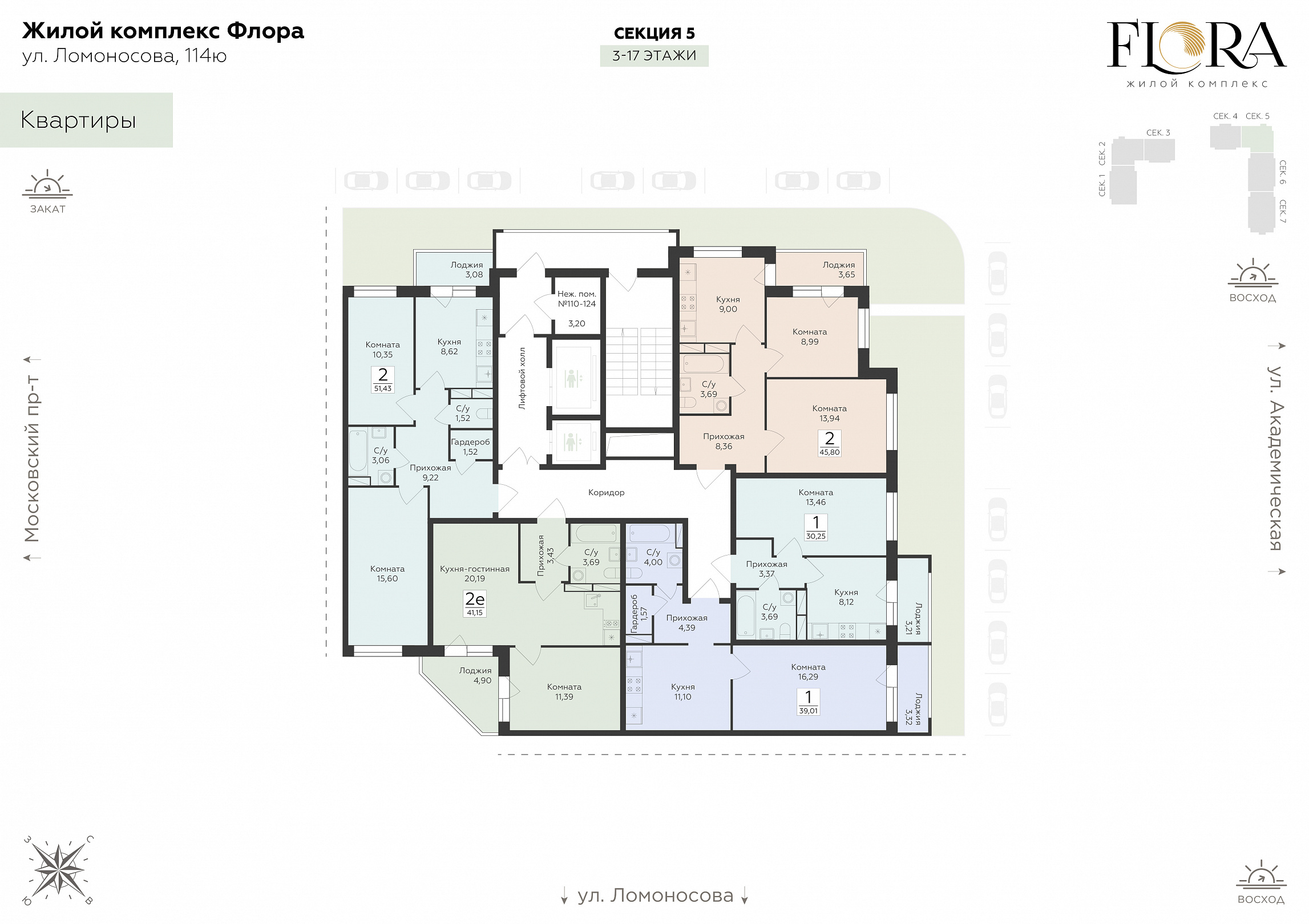 2-ком. квартира (Евро), 41.15 м2, 10 этаж, №450, Flora