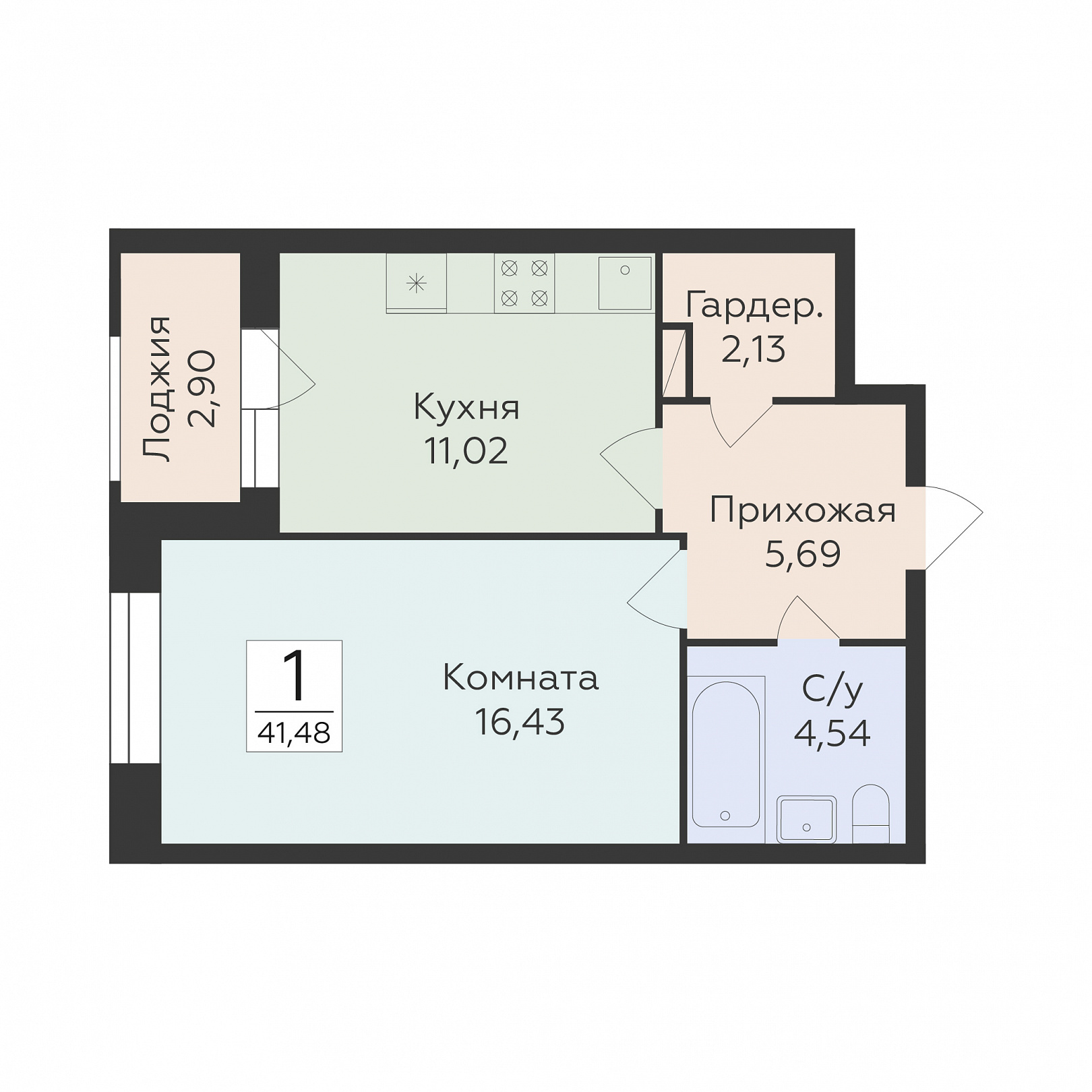 1-комнатная квартира, 41.48 м2, 8 этаж, №49, Суворов сити 2