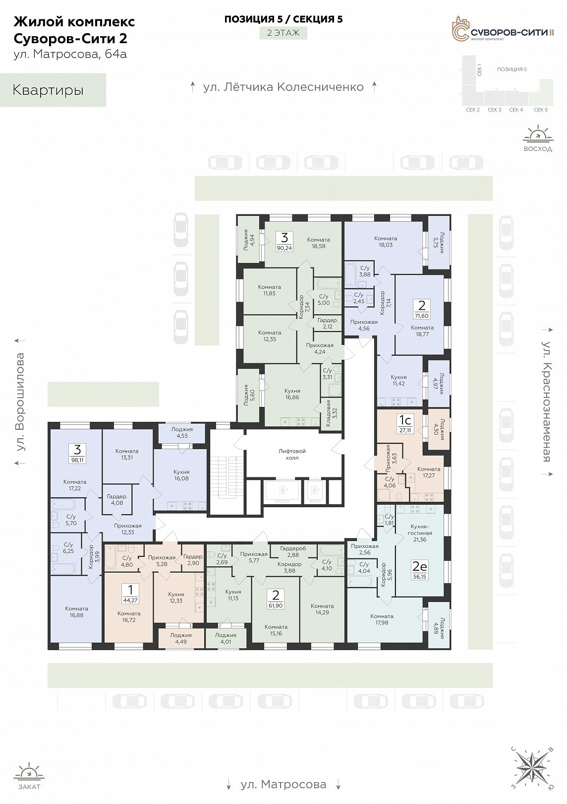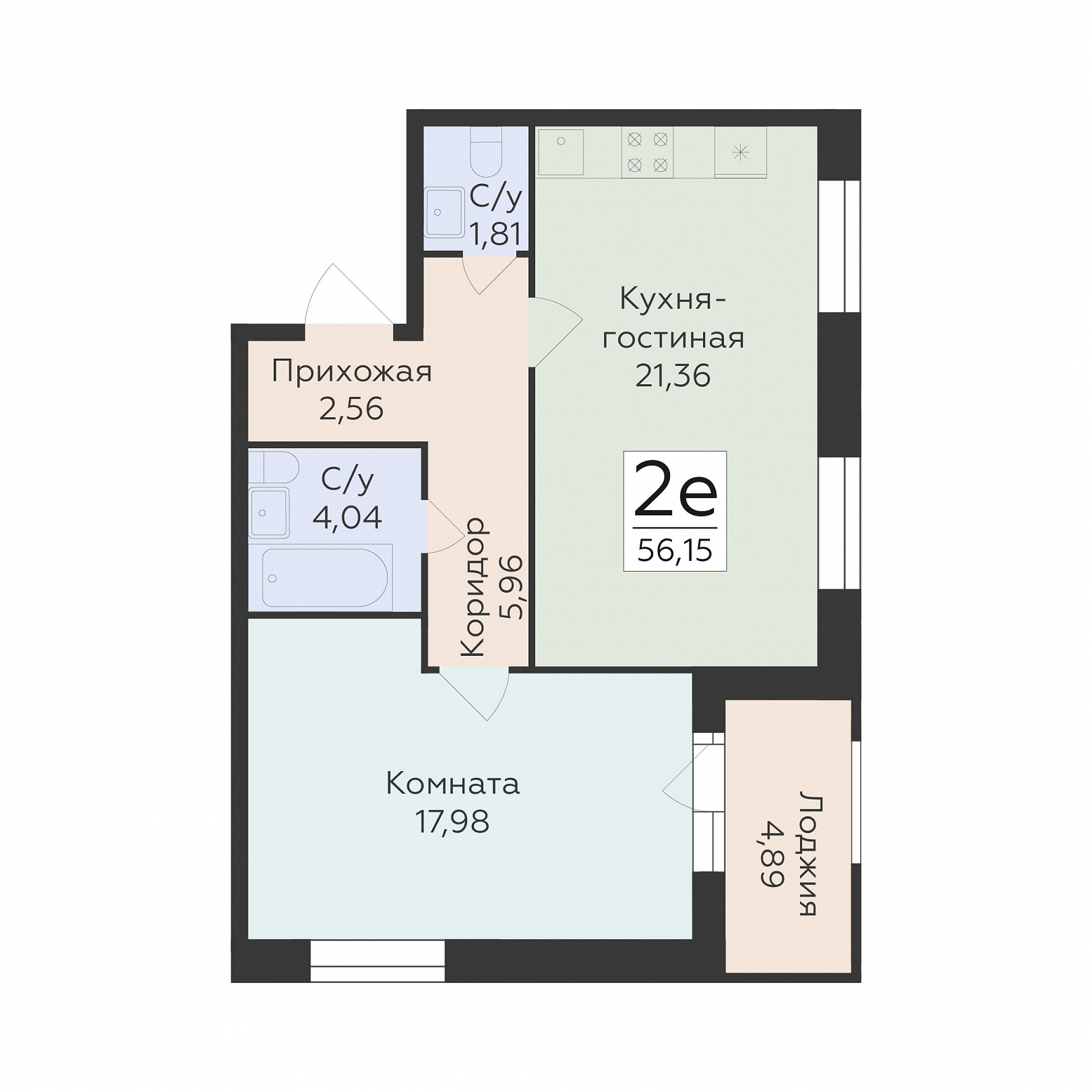 2-ком. квартира (Евро), 56.15 м2, 2 этаж, №268, Суворов сити 2