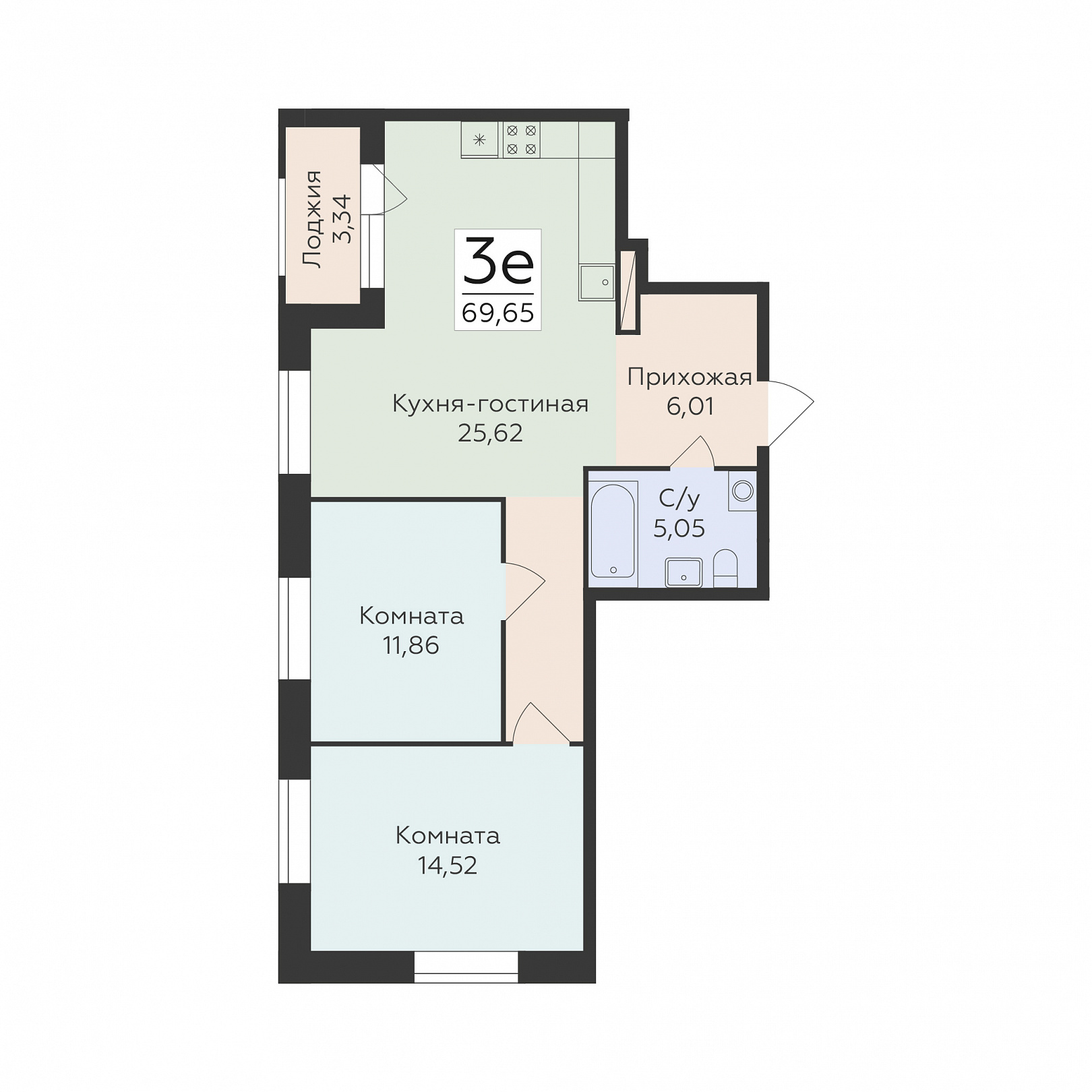 3-ком. квартира (Евро), 69.65 м2, 6 этаж, №107, Суворов сити 2