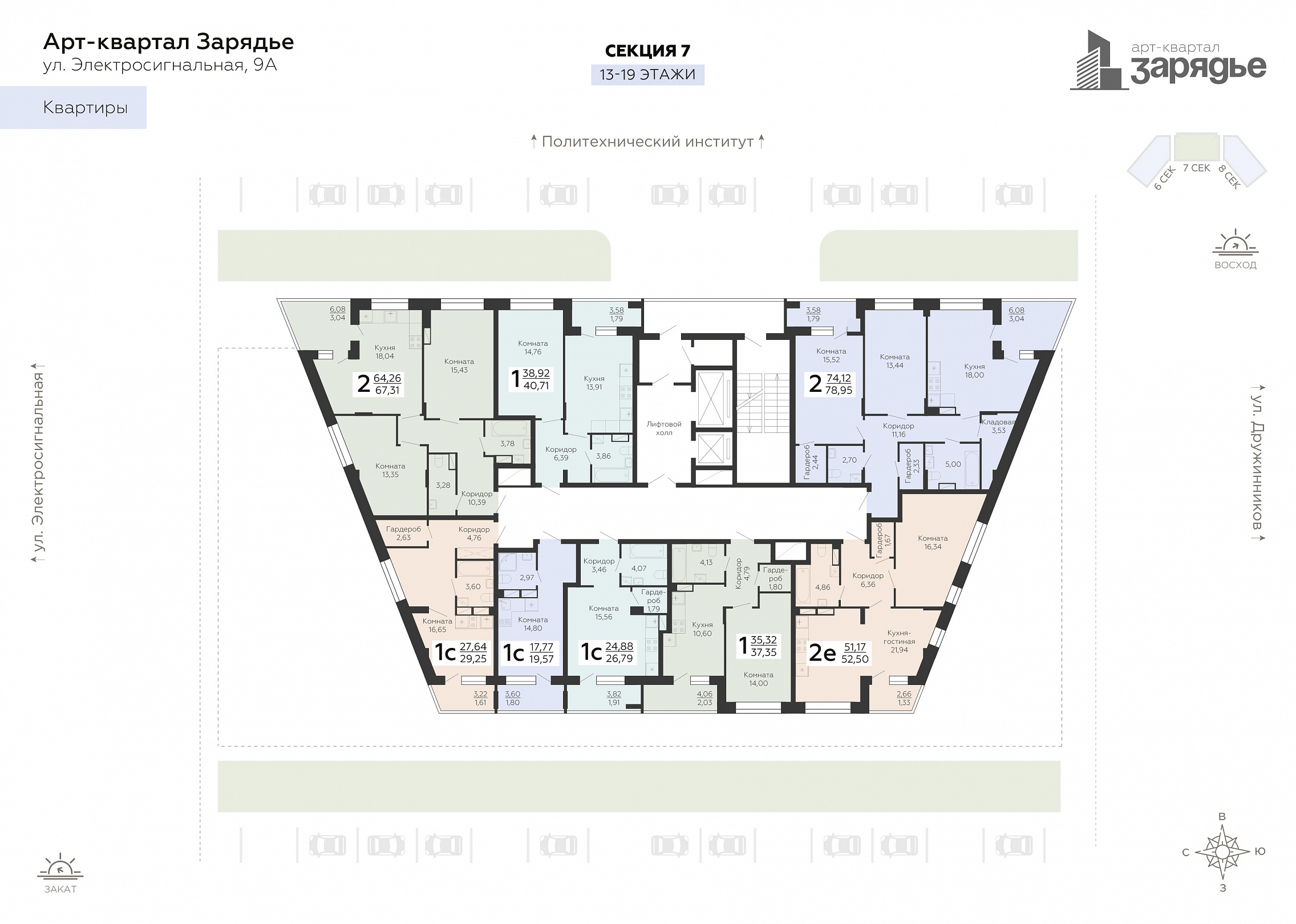 1-комнатная квартира, 40.71 м2, 19 этаж, №376, Зарядье