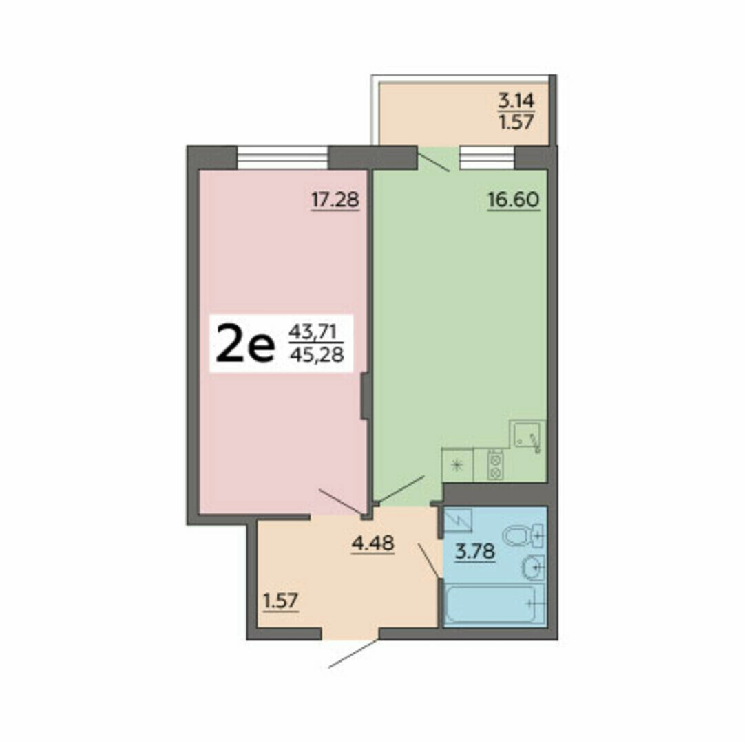 2-ком. квартира (Евро), 45.28 м2, 16 этаж, №176, Авиапарк