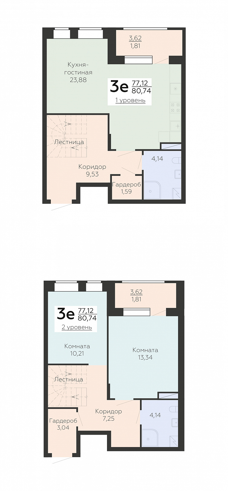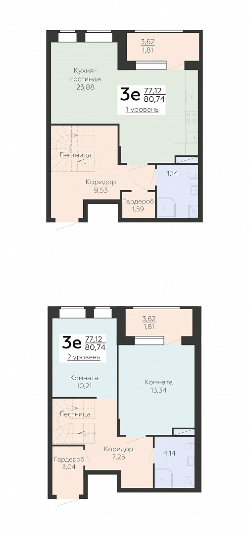 2х ком-ая 2х ур-ая ЕВРО, 80.74 м2, 24 этаж, №216/1, Зарядье