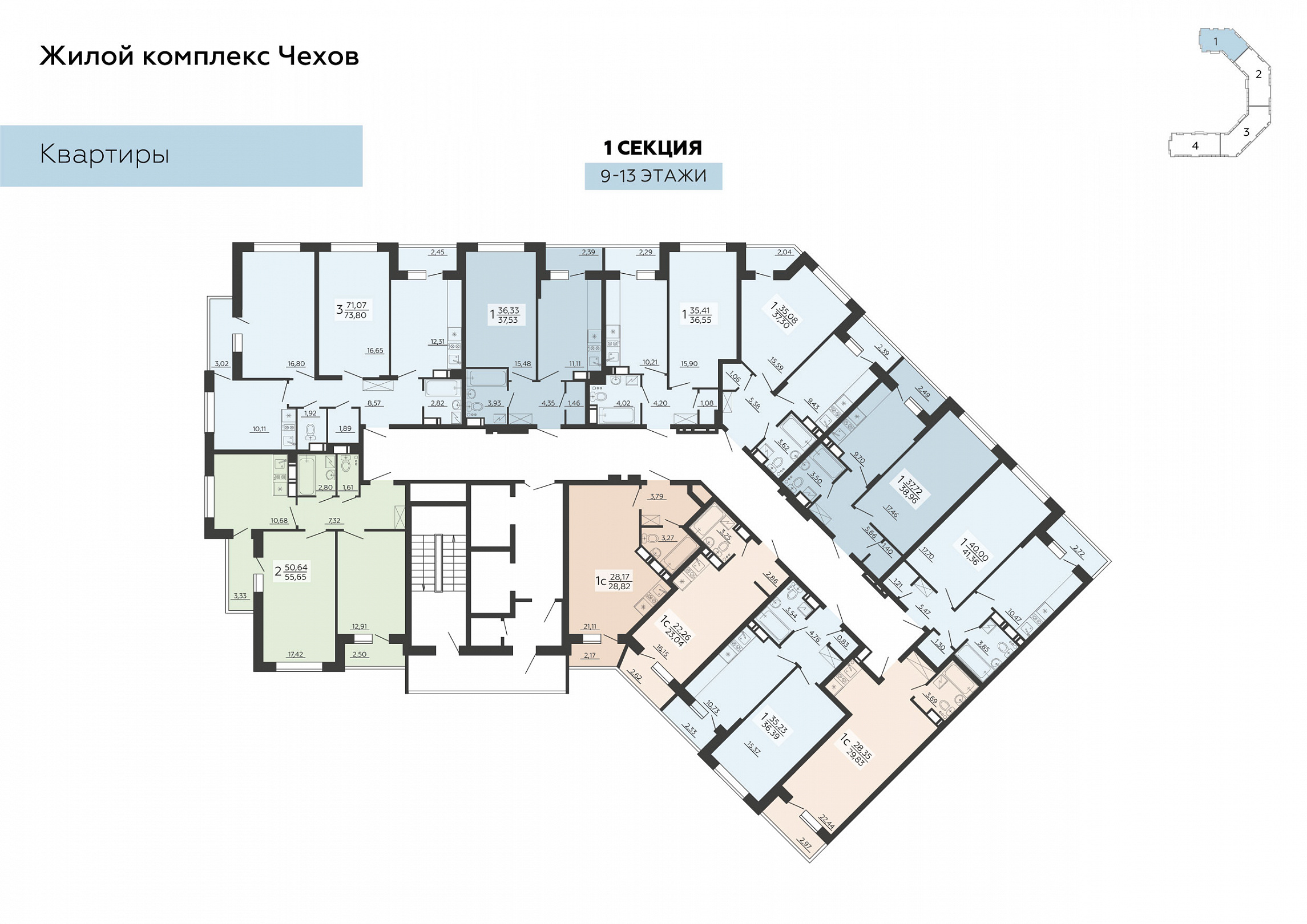 3-комнатная квартира, 73.8 м2, 12 этаж, №123, Чехов