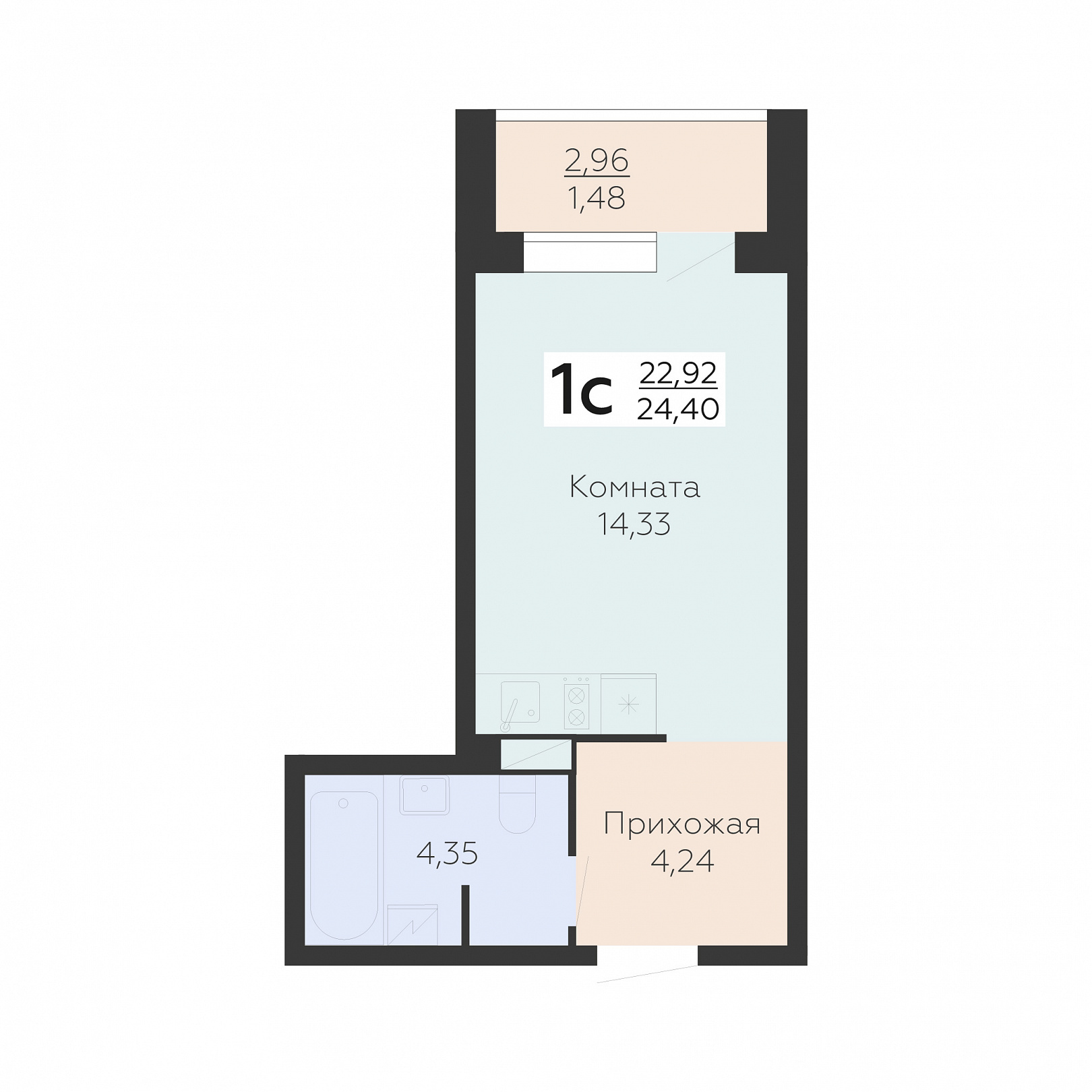 1-комнатная (студия), 24.4 м2, 24 этаж, №691, Зарядье