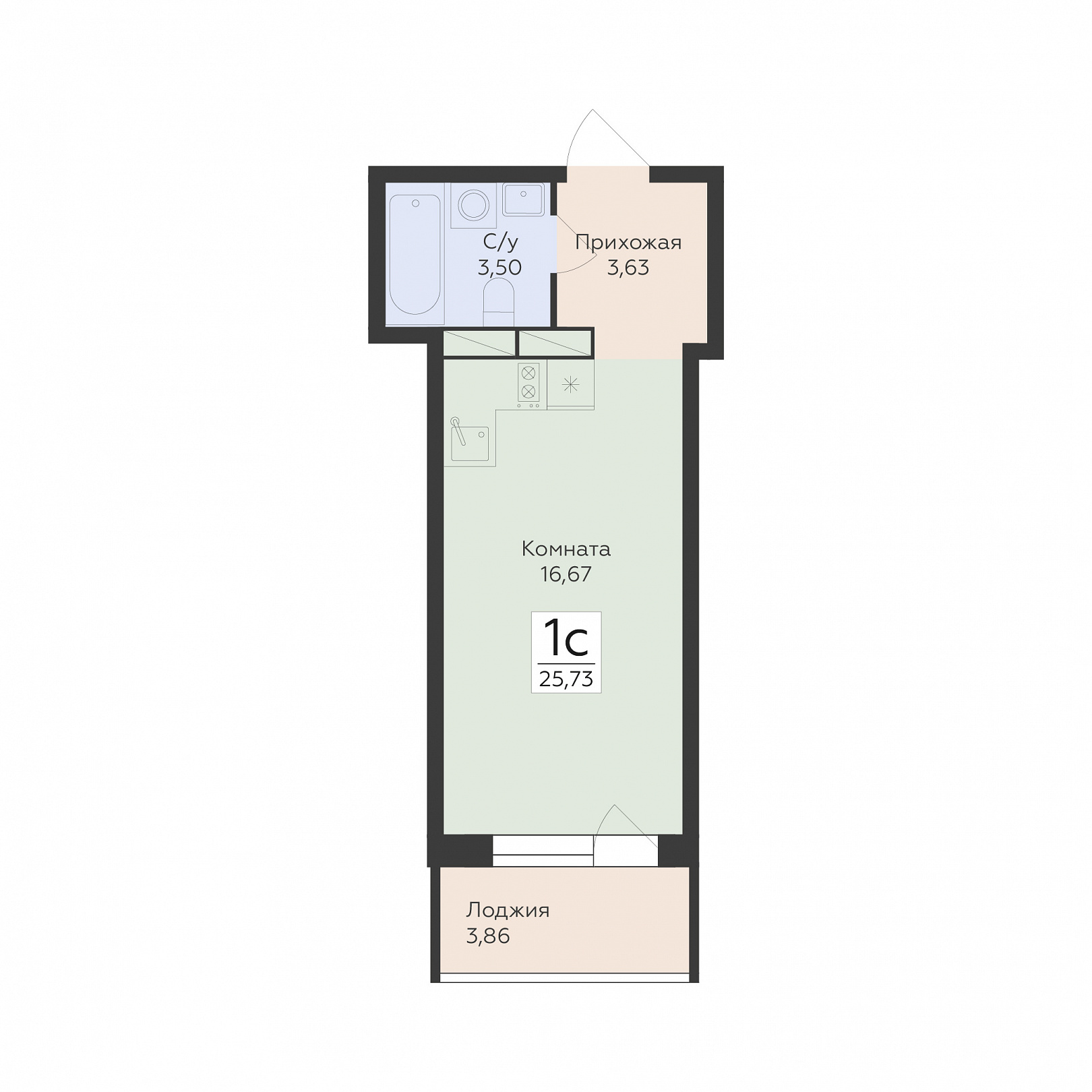 1-комнатная (студия), 25.73 м2, 12 этаж, №713, Flora