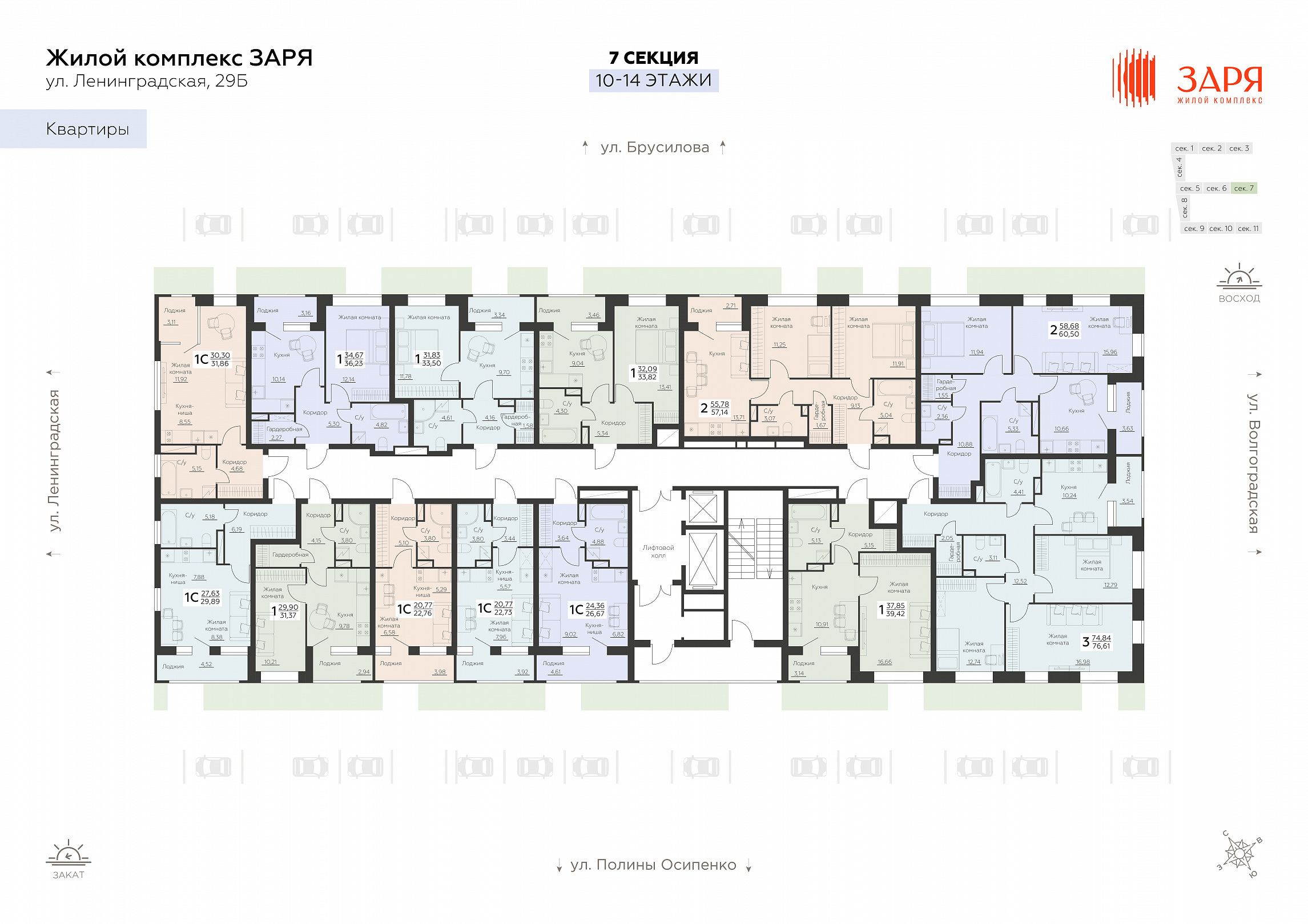 1-комнатная (студия), 29.89 м2, 10 этаж, №659, Заря