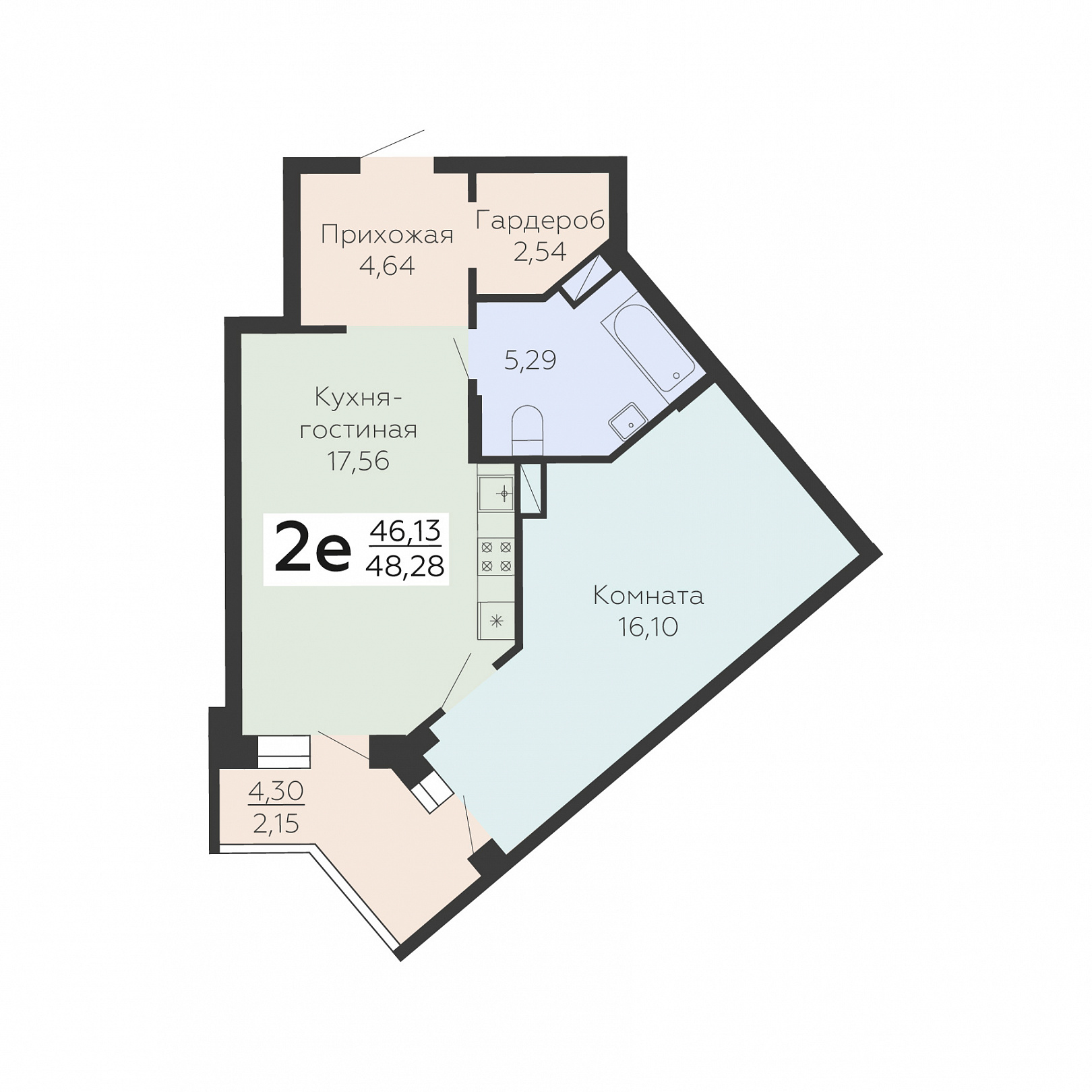2-ком. квартира (Евро), 48.28 м2, 2 этаж, №863, Зарядье