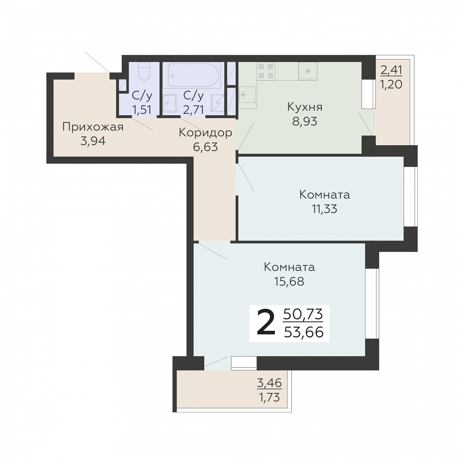 2-комнатная квартира, 53.66 м2, 19 этаж, №545, Никитинские сады
