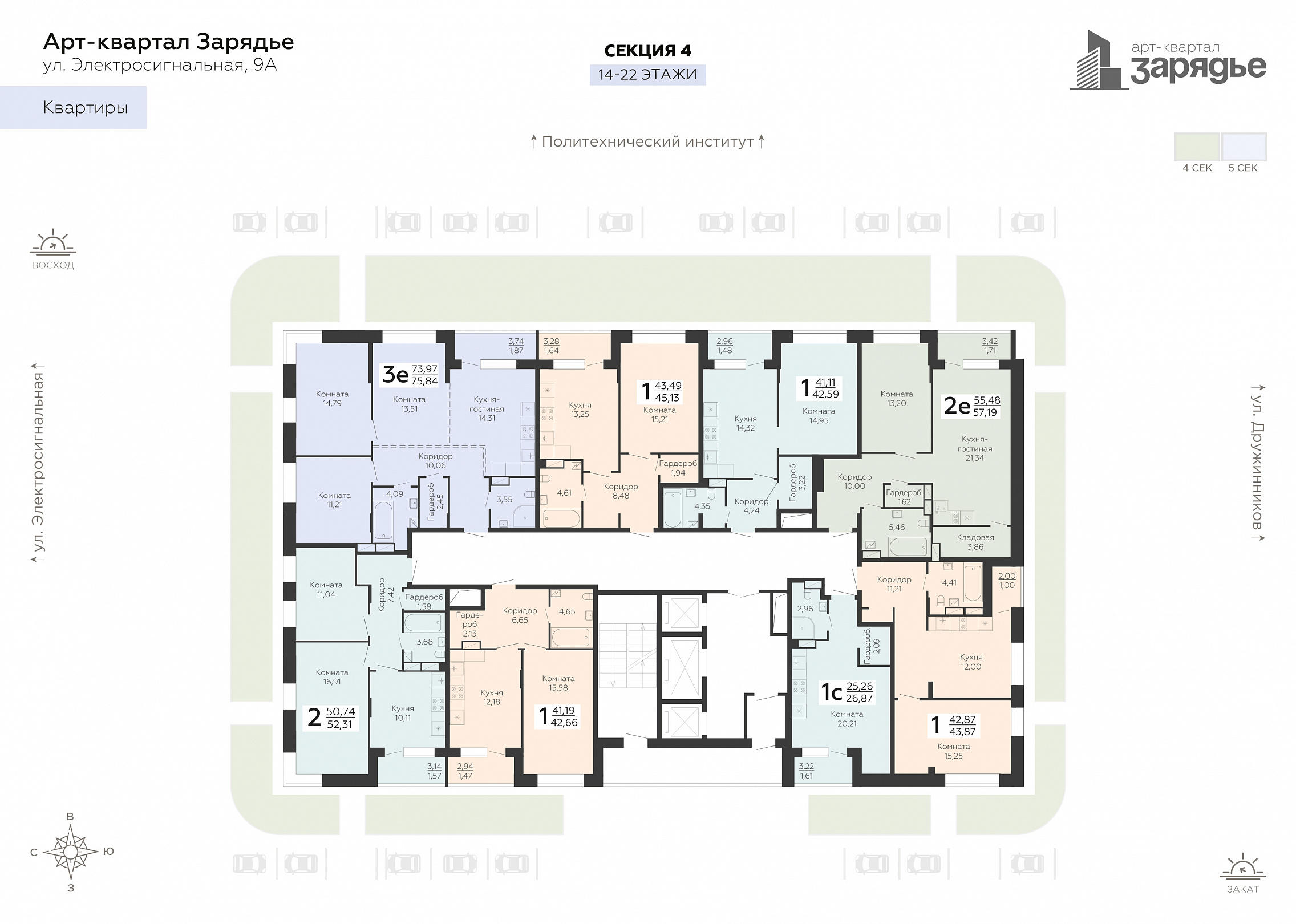 1-комнатная квартира, 42.59 м2, 15 этаж, №623, Зарядье