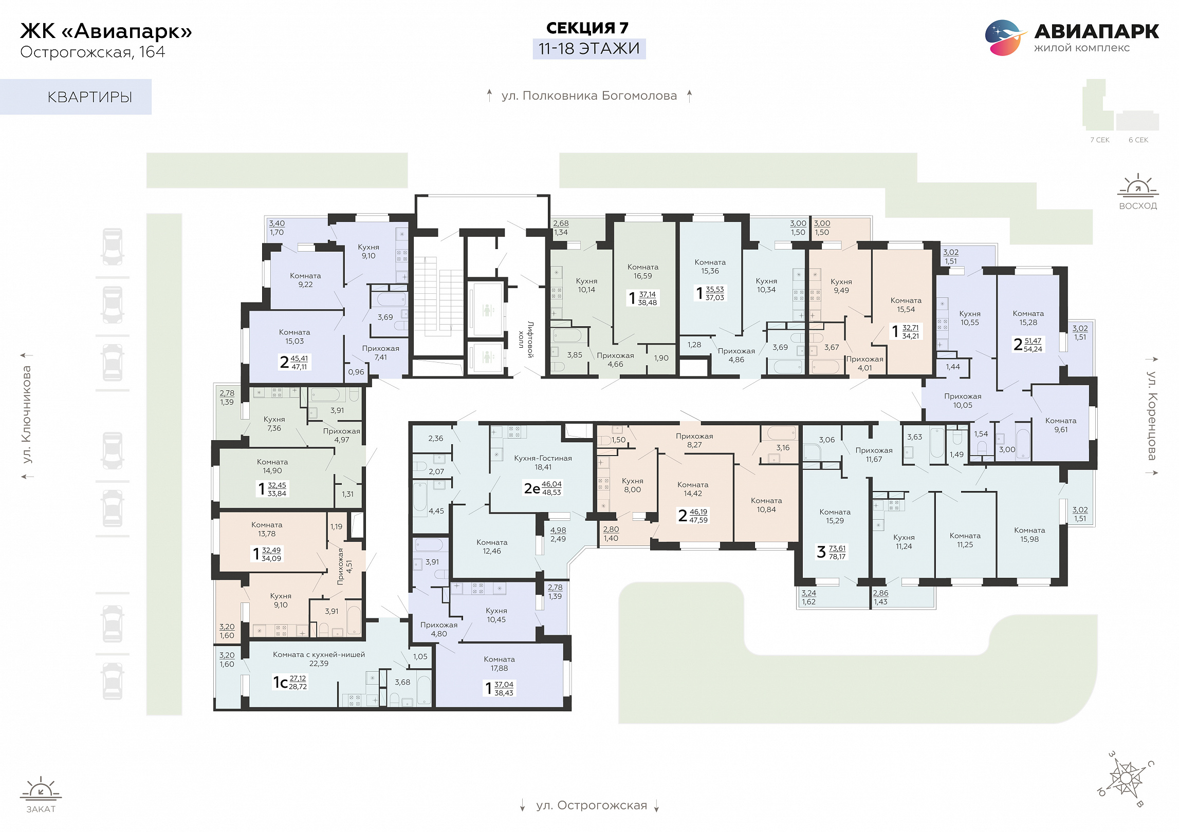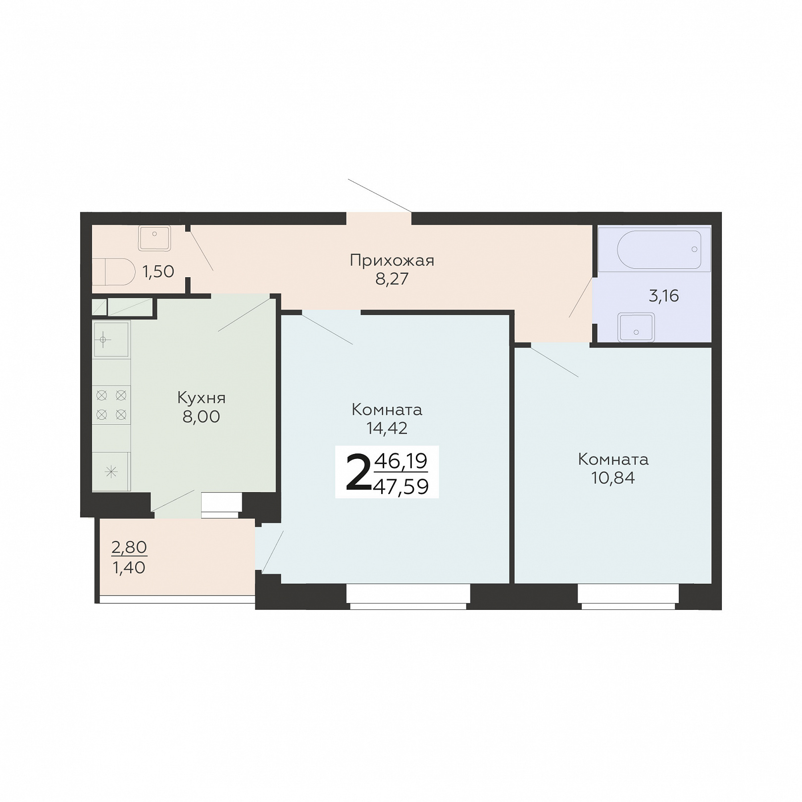 2-комнатная квартира, 47.59 м2, 15 этаж, №279, Авиапарк