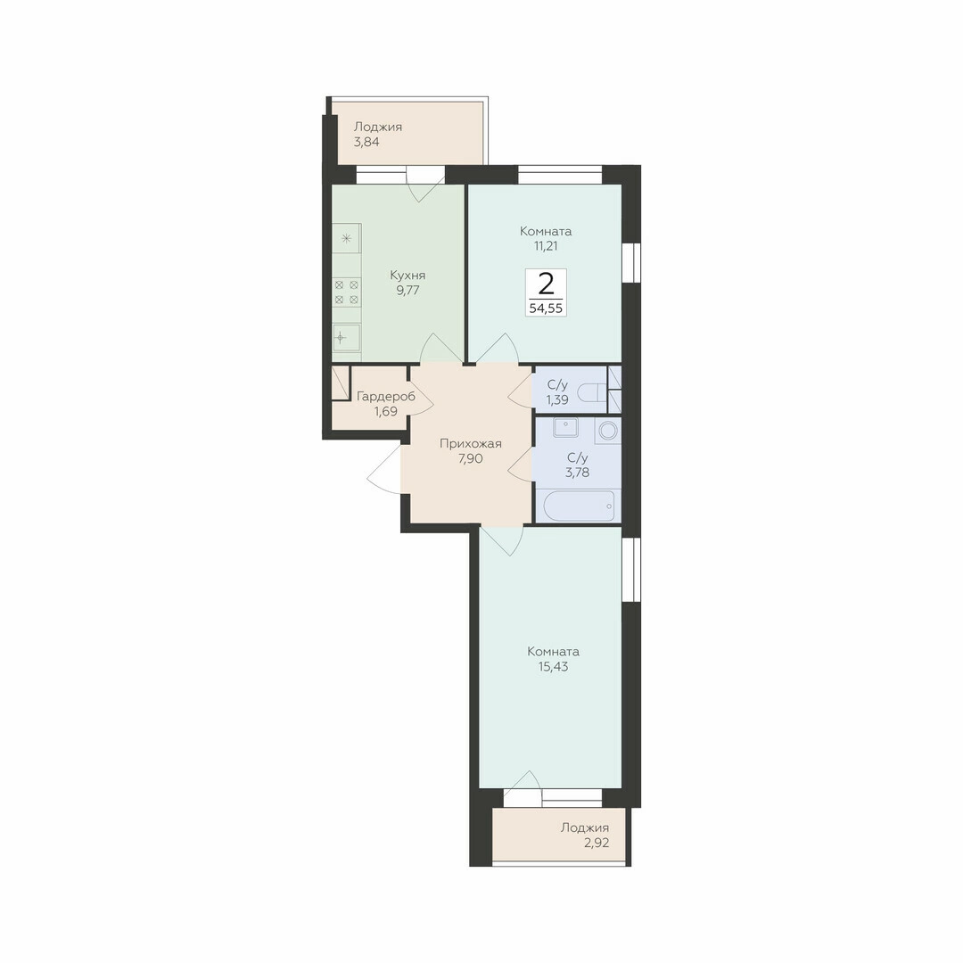 2-комнатная квартира, 54.55 м2, 5 этаж, №262, Flora