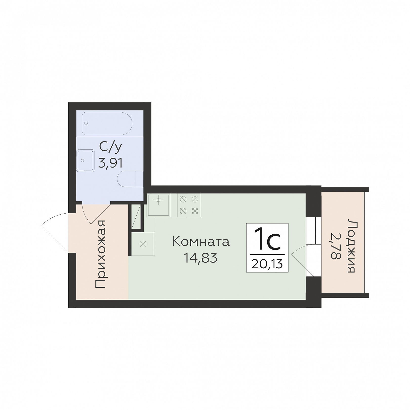 1-комнатная (студия), 20.13 м2, 11 этаж, №126, Авиапарк