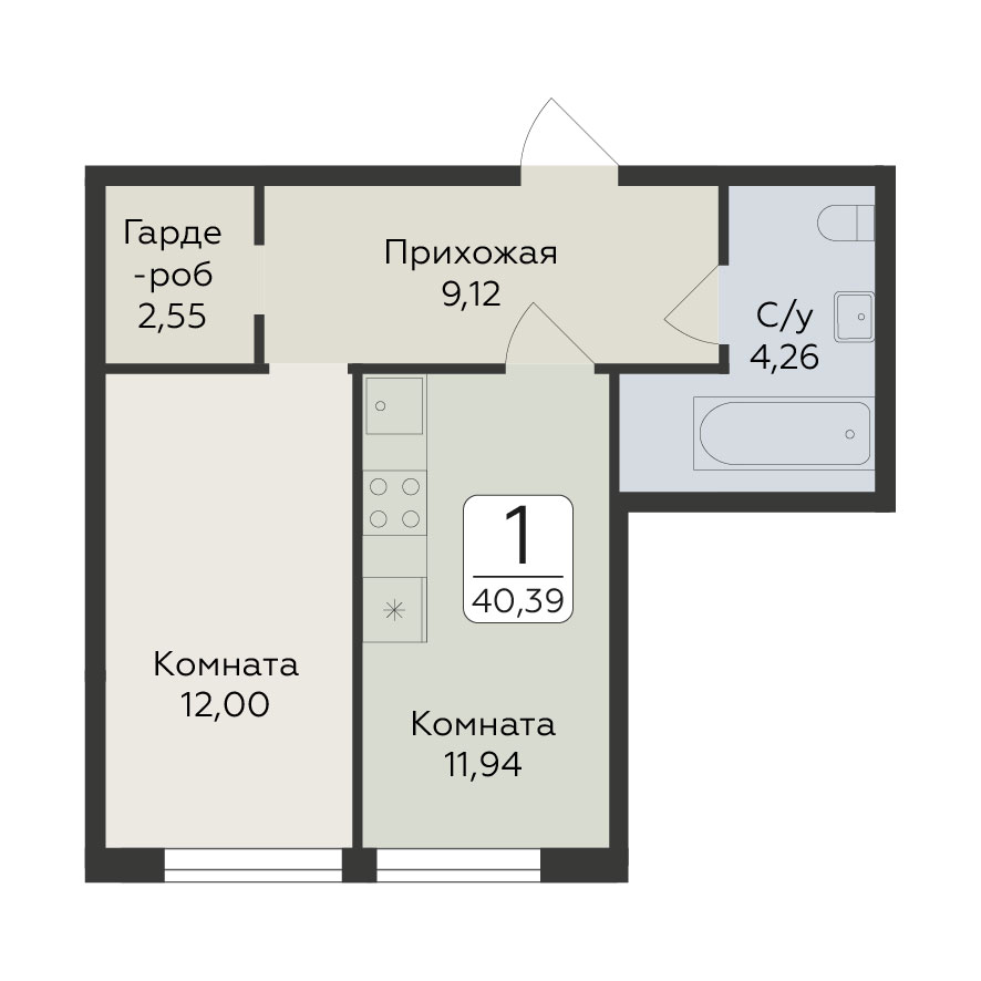 1-комнатная квартира, 40.39 м2, 1 этаж, №319, Панорама юкки