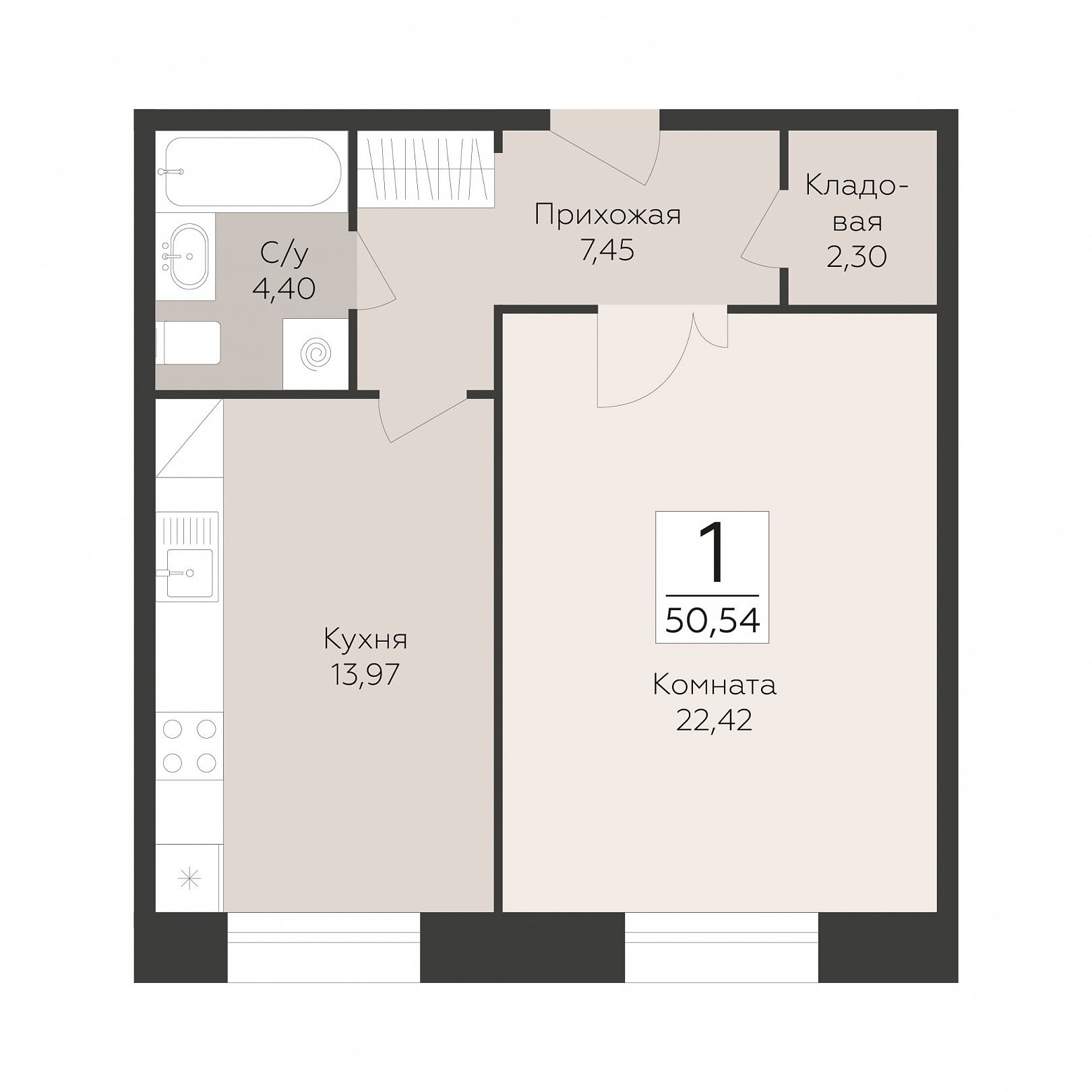 1-комнатная квартира, 50.54 м2, 2 этаж, №92, Пахра сити
