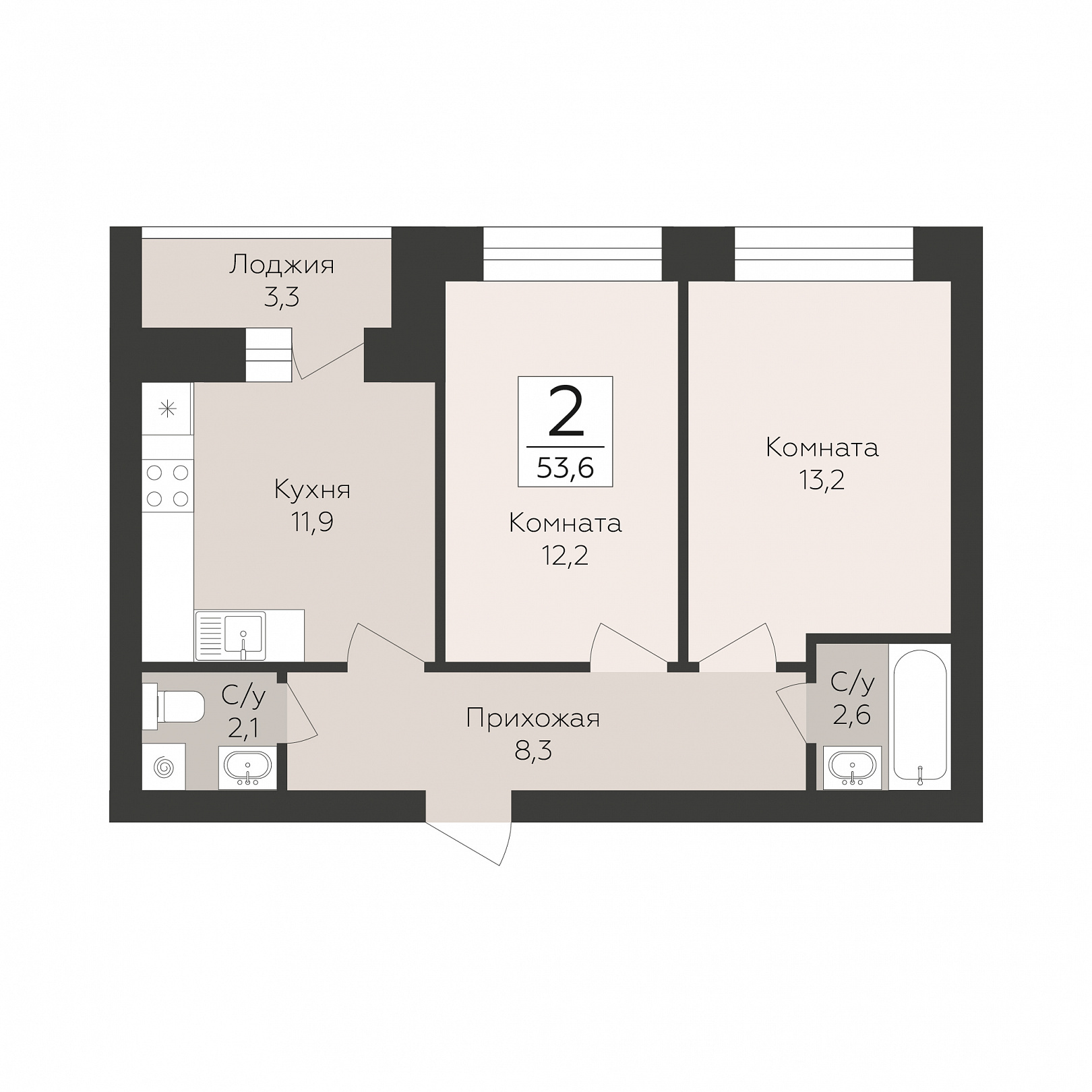 2-комнатная квартира, 53.6 м2, 1 этаж, №4, Тургенев