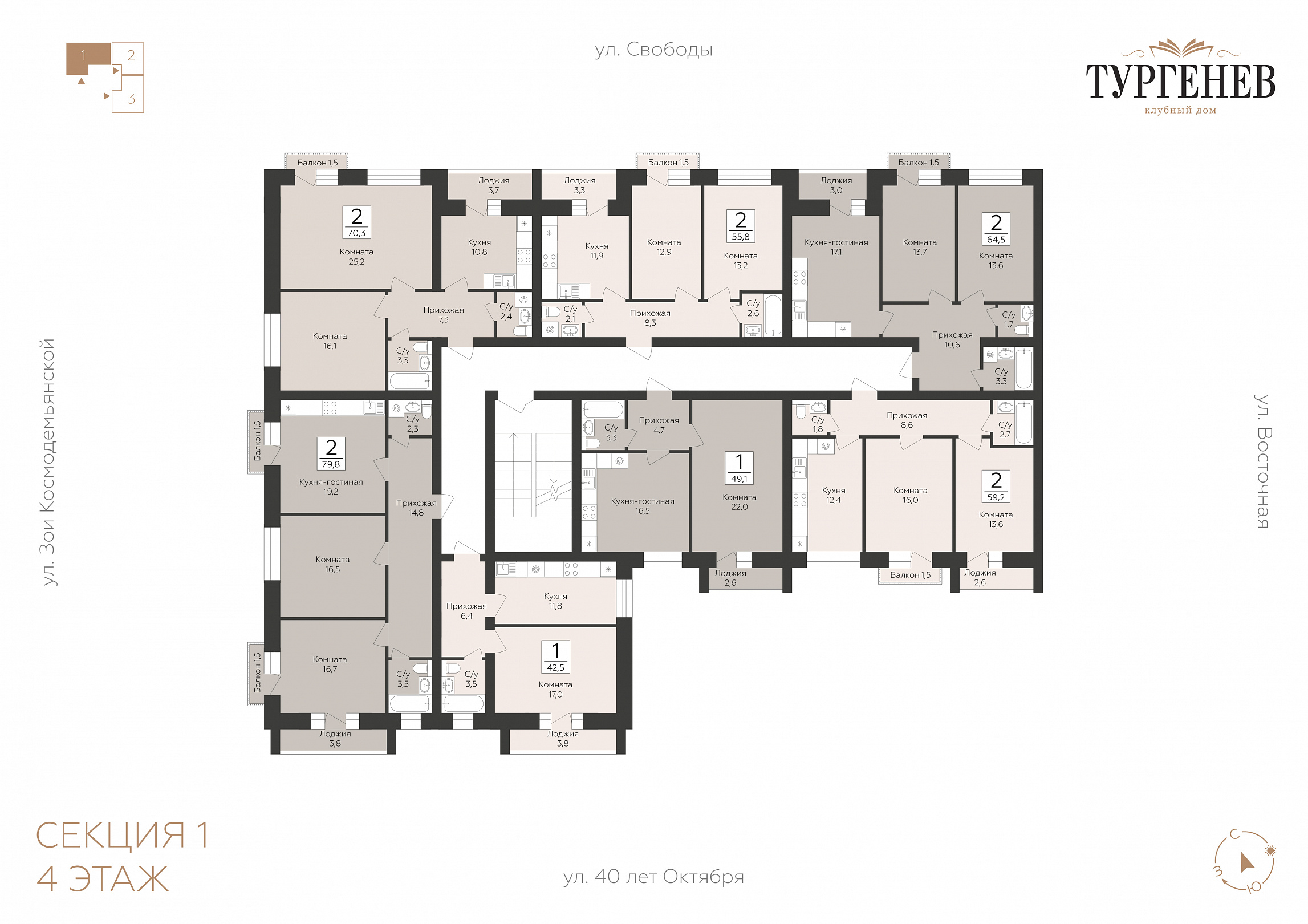 2-комнатная квартира, 55.8 м2, 4 этаж, №25, Тургенев