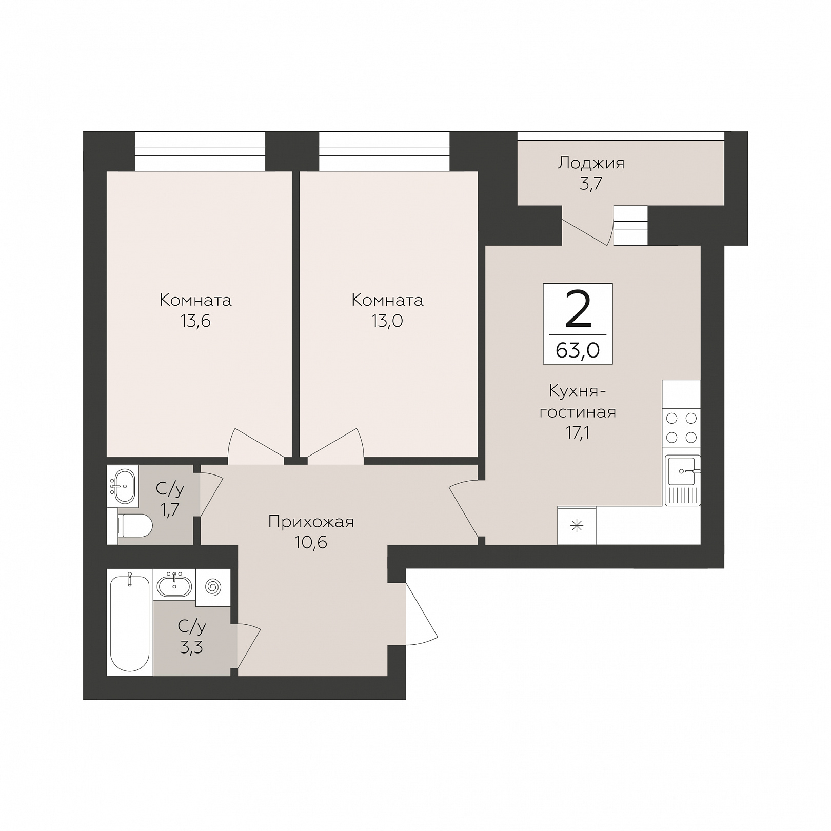 2-комнатная квартира, 63 м2, 1 этаж, №30, Тургенев