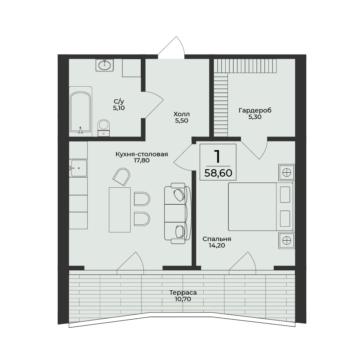 58.6 м2