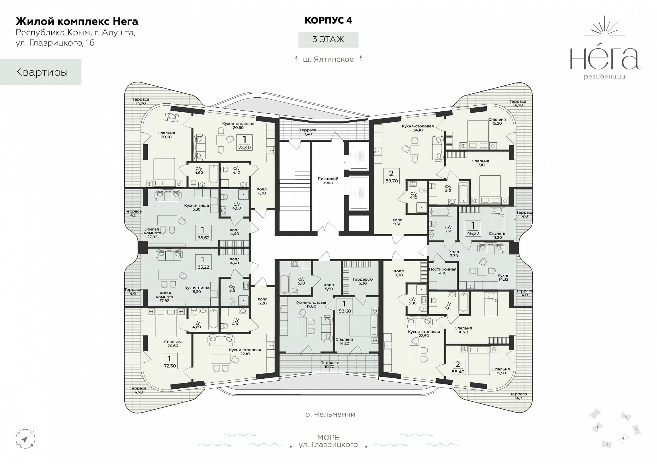 3 (Республика Крым,г.Алушта, ул. Глазгрицкого,16) секция, 6 этаж