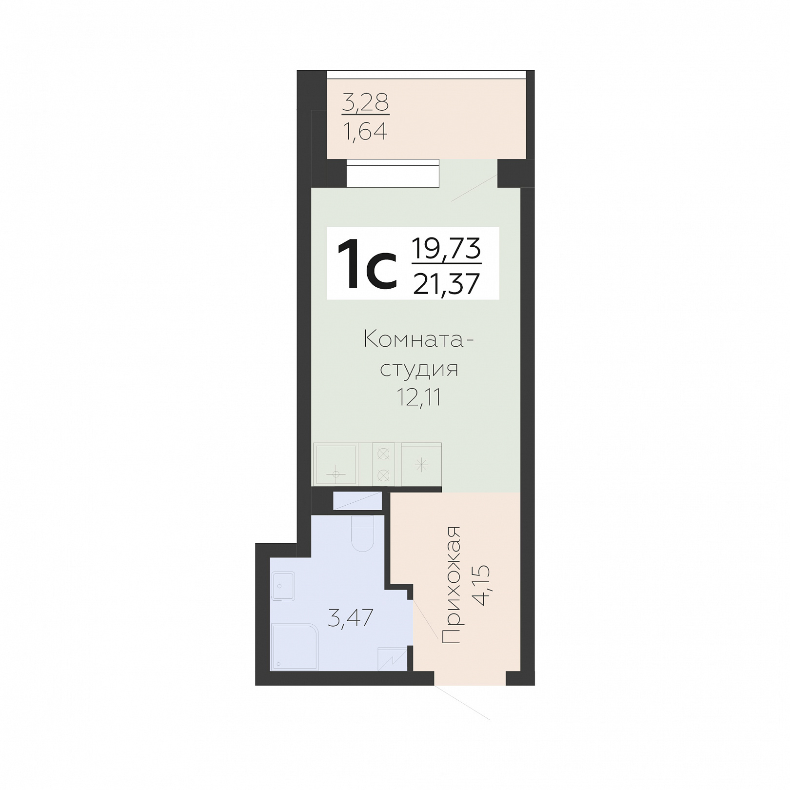 1-комнатная (студия), 21.37 м2, 6 этаж, №786, Зарядье